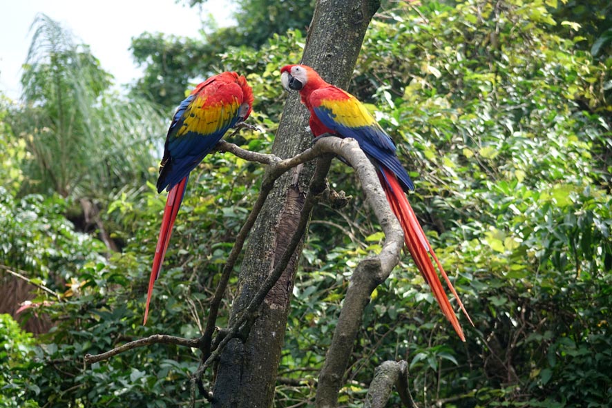 Mein Landausflug führte mich in dem Gumbalimba Park, dem besten Naturschutzpark der Insel. Es ging durch tropische Wälder mit vielen Tieren und Pflanzen die ich noch nie gesehen hatte. Überall hörte man die Vögel und sah Kolibris. Durch die Luft glitten elegante Papageien, die Aras mit ihren leuchtenden Farben. In den Bäumen hüpften die niedlichen Kapuzieneraffen. Am Boden sah man seltsame Tiere, die die Einheimischen Rabbit, also Hasen nennen, die aber nicht die typischen langen Ohren hatten. Es war ein besonderes Naturerlebnis auf Roatán, irgendwie so wie man sich die Karibik zur Zeit der Entdecker/Eroberer vorstellt.