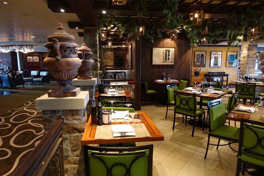 Es gab an Bord insgesamt 19 Restaurants, davon 7 die im Reisepreis enthalten sind und 12 sogenannte Spezialitätenrestaurants, die einen sehr geringen Aufpreis kosten. Verhungern konnte man nicht, es gab immer etwas Leckeres, für wirklich Jeden. Auch die 15 Bars konnten sich sehen lassen. Irgendwie merkte man teilweise überhaupt nicht, das man auf einem Schiff war. Auf dem Oberdeck gab es einen Wasserpark mit verschiedenen Rutschen, einen Minigolfplatz, eine Kletterwand und einen Hochseilgarten. Auf dem Pooldeck gab es einen Bereich, der nichts extra kostete, aber der Zugang erst ab 18 Jahren war.