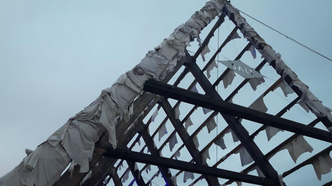 Direkt am Anleger befindet sich ein interessanter Komplex, der SALT heißt. Es ist viel los, denn heute ist ja Freitagabend und das Wochenende beginnt. Besucher können hier essen und trinken, Musikveranstaltungen besuchen und auch dieses Kunstwerk bestaunen. Auf einer Holzkonstruktion sind Hemden aufgespannt und man könnte fast meinen, es wäre Waschtag in Oslo. Der Wind lässt die Teile im Wind flattern und eine bunte Beleuchtung setzt schön Akzente. Da wir nicht hetzen müssen, trödeln wir etwas im Hafen.