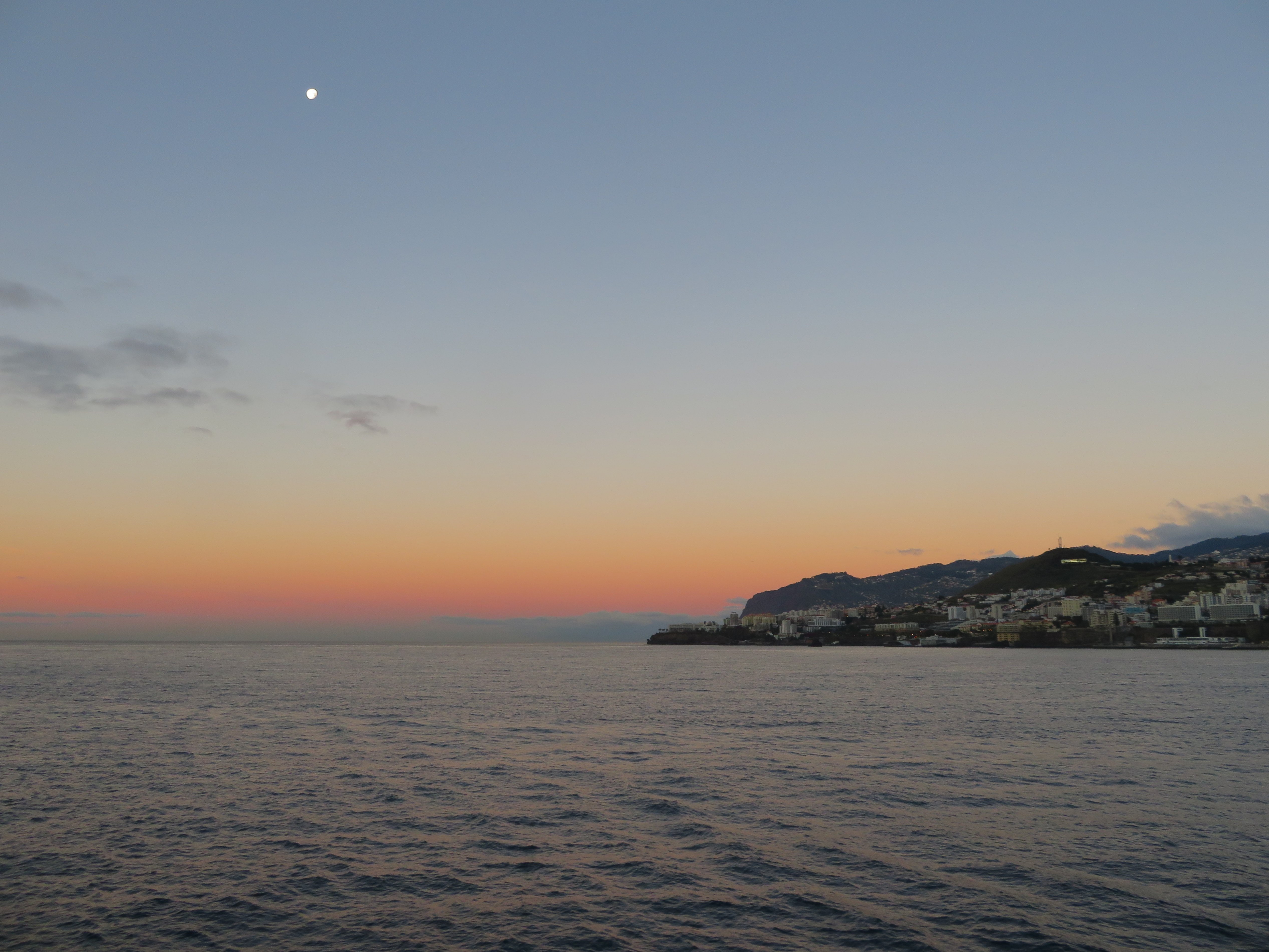 Obwohl ich keinen Ausflug gebucht habe bin ich früh auf den Beinen. Das Einlaufen in den Hafen von Funchal gehört für mich mit zu den Schönsten überhaupt. Ich möchte es auf keinen Fall verpassen. Während der Tag langsam erwacht scheint noch der Mond.