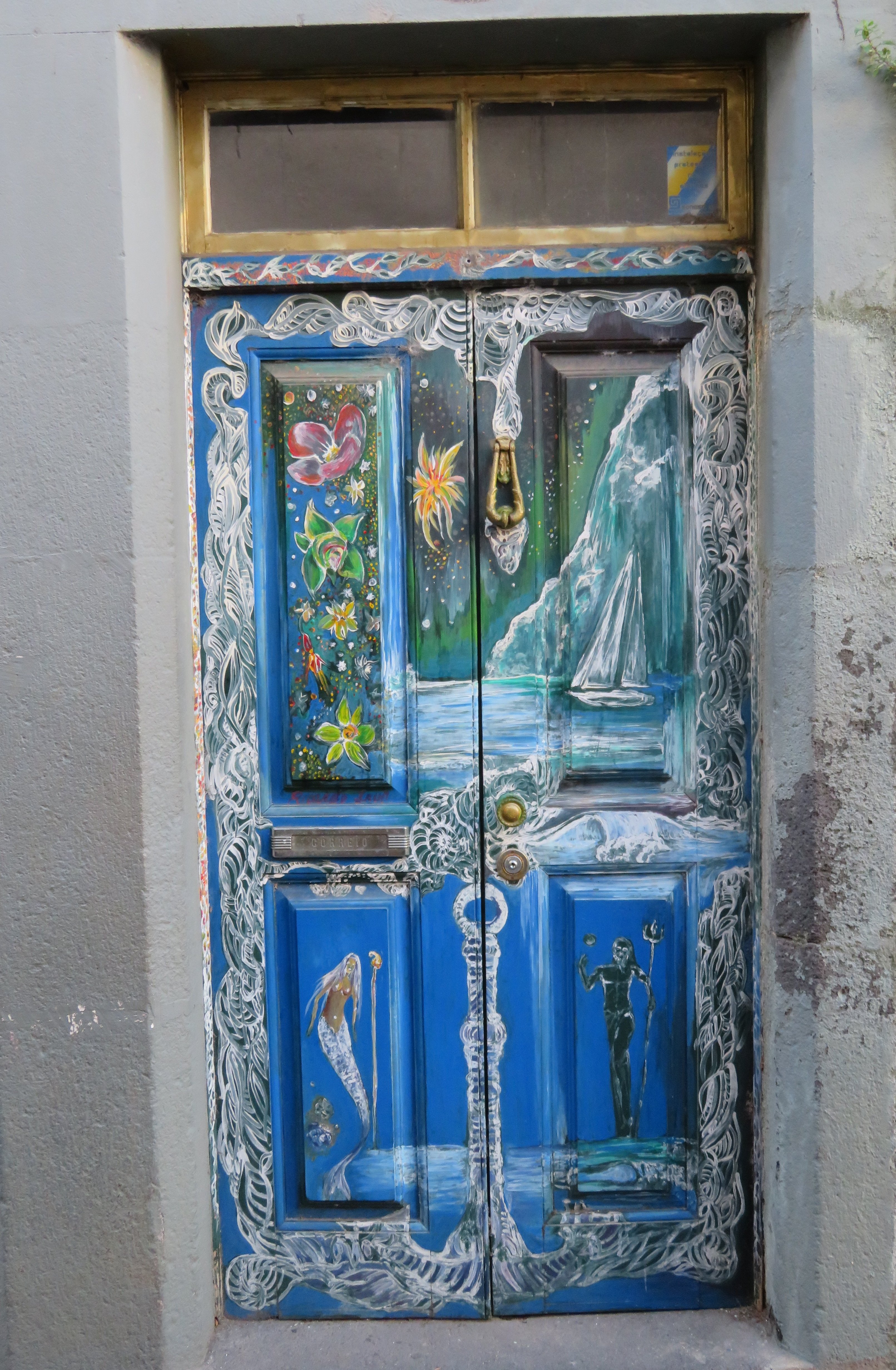 Ich gerate in eine weitere schmale Straße mit bemalten Haustüren.