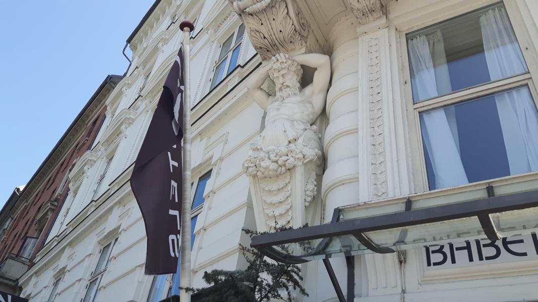 Dieser etwas böse dreinschauende Herr über dem Eingang eines Hotels ist mir nicht unbekannt. Freundlicher ist er inzwischen nicht geworden. Wenn Mutti das Bild sieht, wird sie sicher sagen „der hat aber ganz schöne Muckis!!!“.