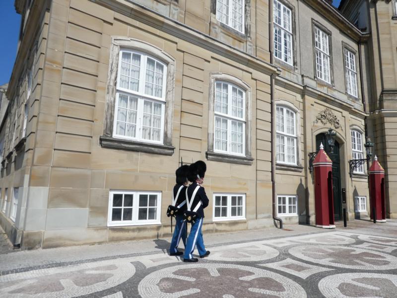 Einen Katzensprung entfernt liegt das Schloss Amalienborg. Die vier prunkvollen Gebäude, die fast identisch aussehen, umschließen den großen Platz.