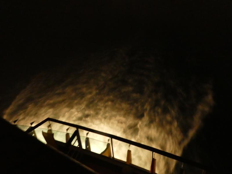 Heftig sprudelt das Wasser und die Heckwelle ist wildschäumend. „Ob die wohl die Motoren testen bei Vollspeed“, fragt meine Schwester mich. „Könnte sein, ab und zu machen die sowas“ flüstere ich. Jetzt aber ab ins Bett und Gute Nacht, morgen früh sind wir in Kiel und müssen pünktlich fertig sein.