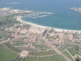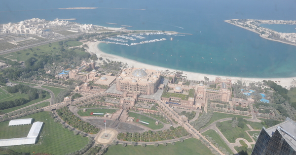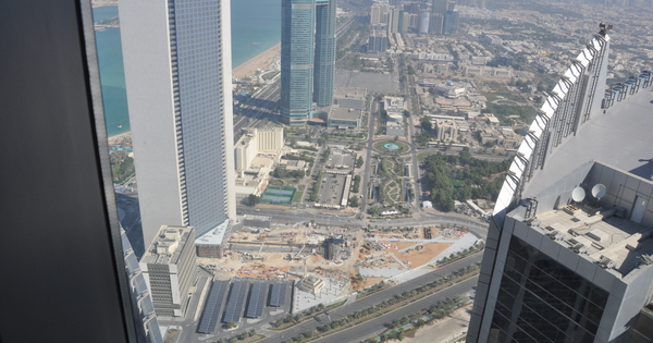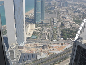 Wir sind wie immer im Orient mit dem Taxi unterwegs. lassen uns zum Ethiad Towers fahren und besuchen hier das Observation Deck im 74. Stock. Kosten pro Person 95 Dirham inkl. eines Verzehrgutscheines von 55 Dirham. So genießen wir den tollen Blick über Abu Dhabi bei einem edlen Latte.