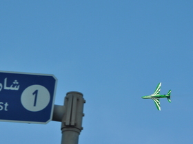 Danach ein Spaziergang über die Corniche, in Begleitung zweiter ständig über uns fliegender Kampfjets, kurzer Stop für ein Getränk unter Arabern und mit dem Taxi zurück zur Bella.