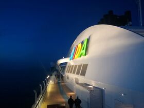 Während auf der Prima neben dem Fuego Restaurant ein kleiner Kinderbereich mit ein paar Stoffbausteinen war, ist auf der Perla ein kleines Kletter-Piratenschiff aufgestellt worden.