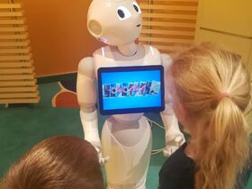 Danach treffen wir noch den absoluten Liebling unserer Kinder: Roboter Pepper.