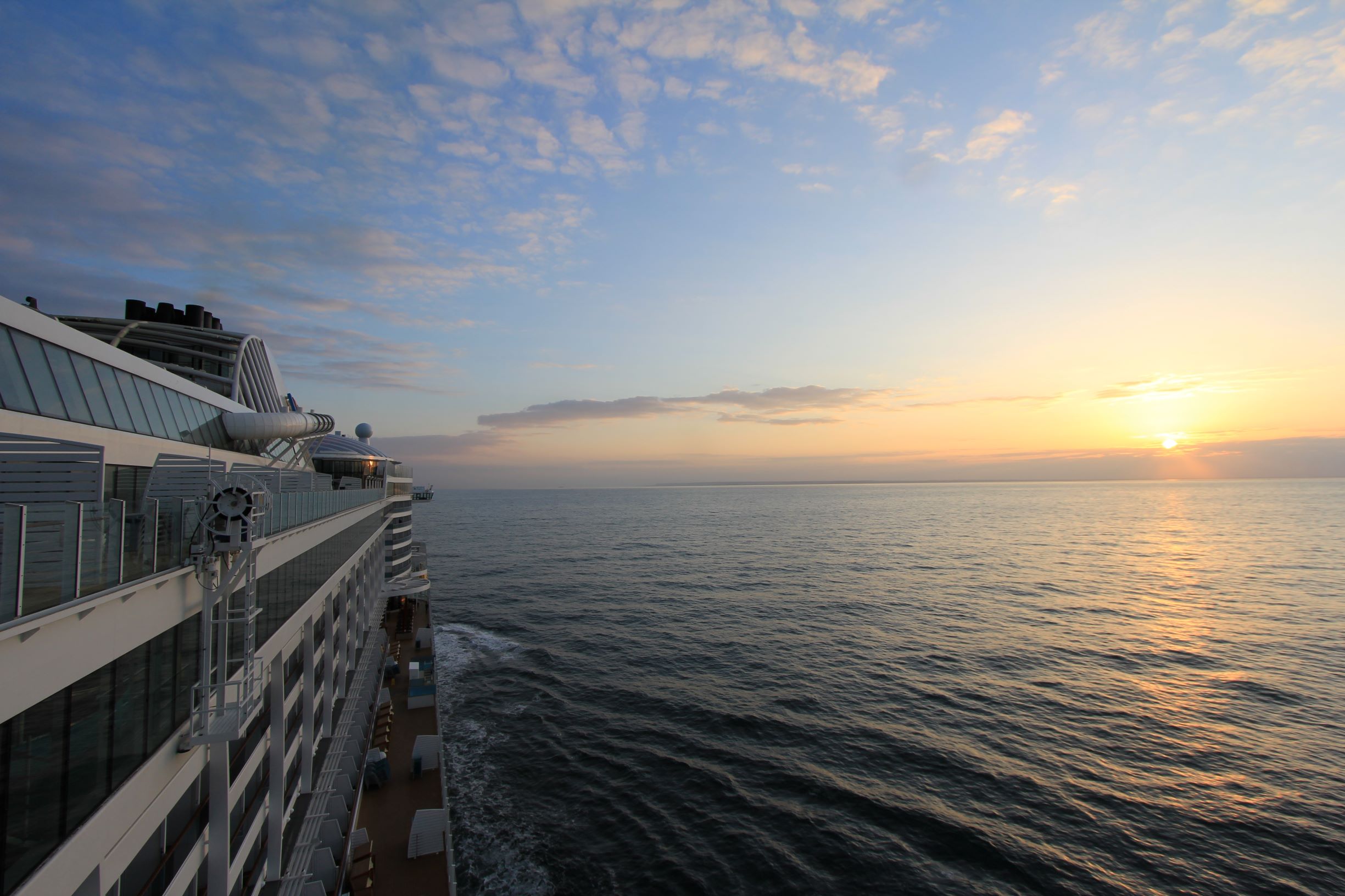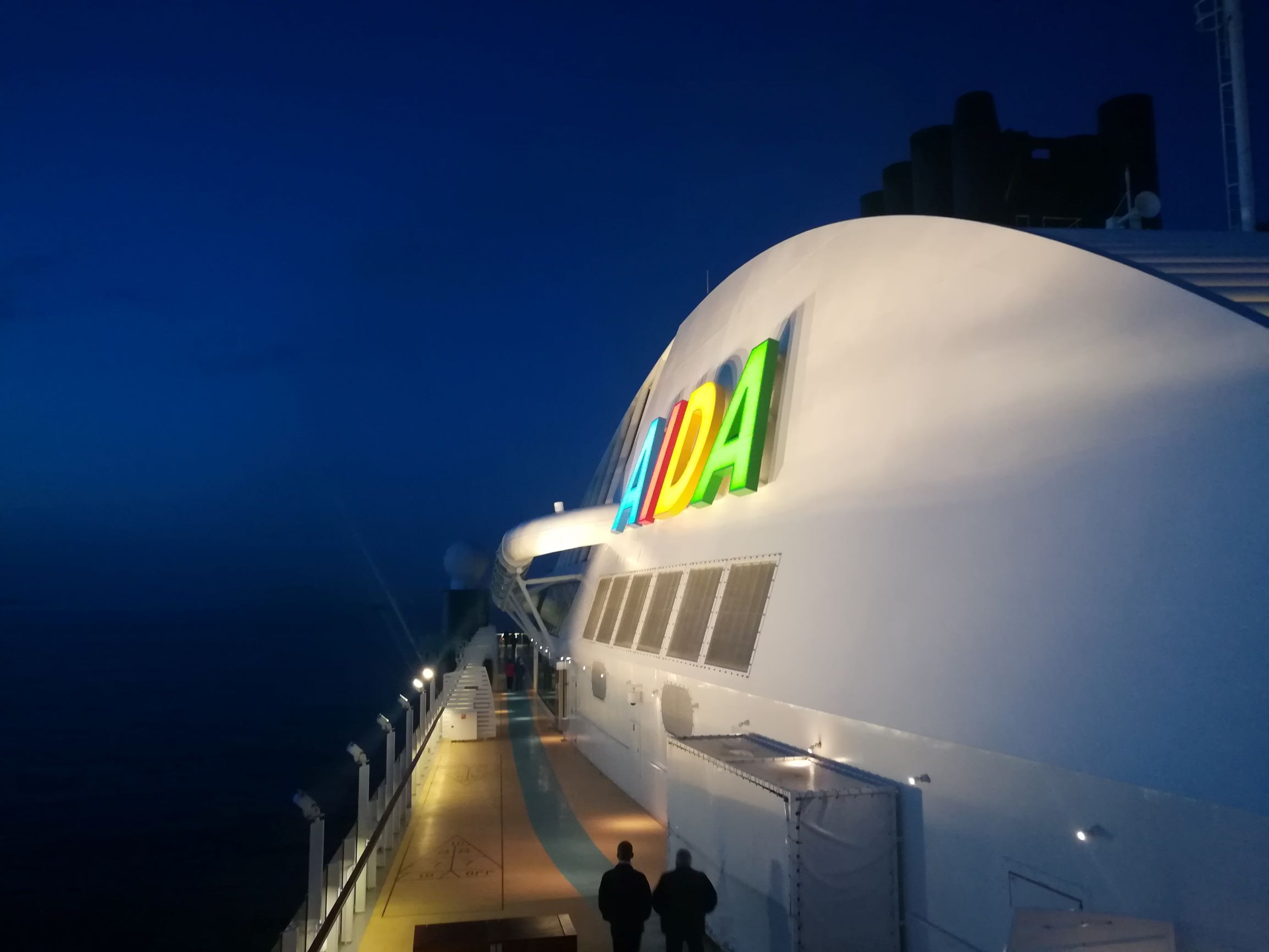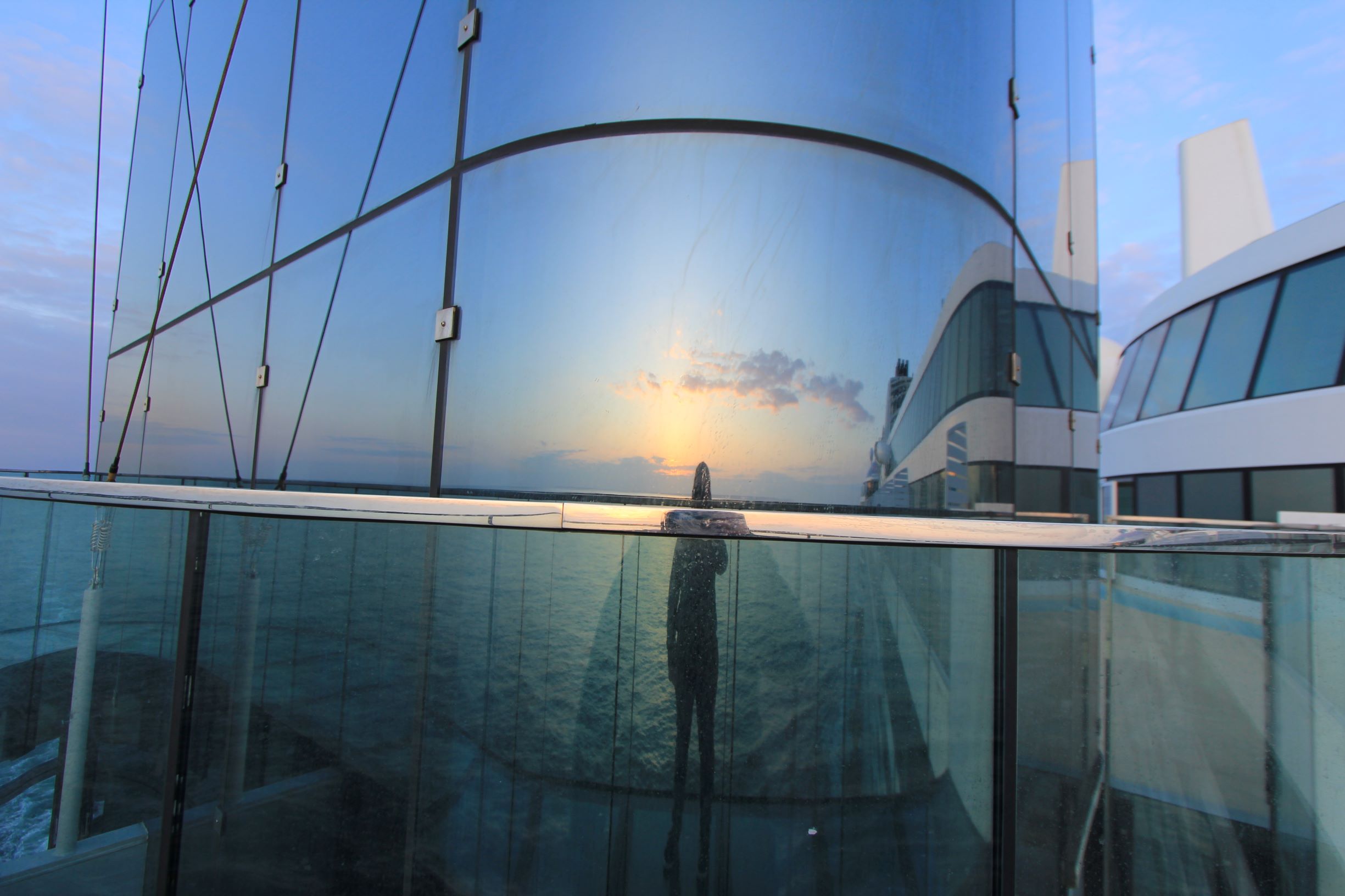 Während Jens dann die Kids hütet und versucht sie zum Schlafengehen zu bewegen, schaue ich mir auf Deck 16 auf dem Skywalk den Sonnenuntergang an.