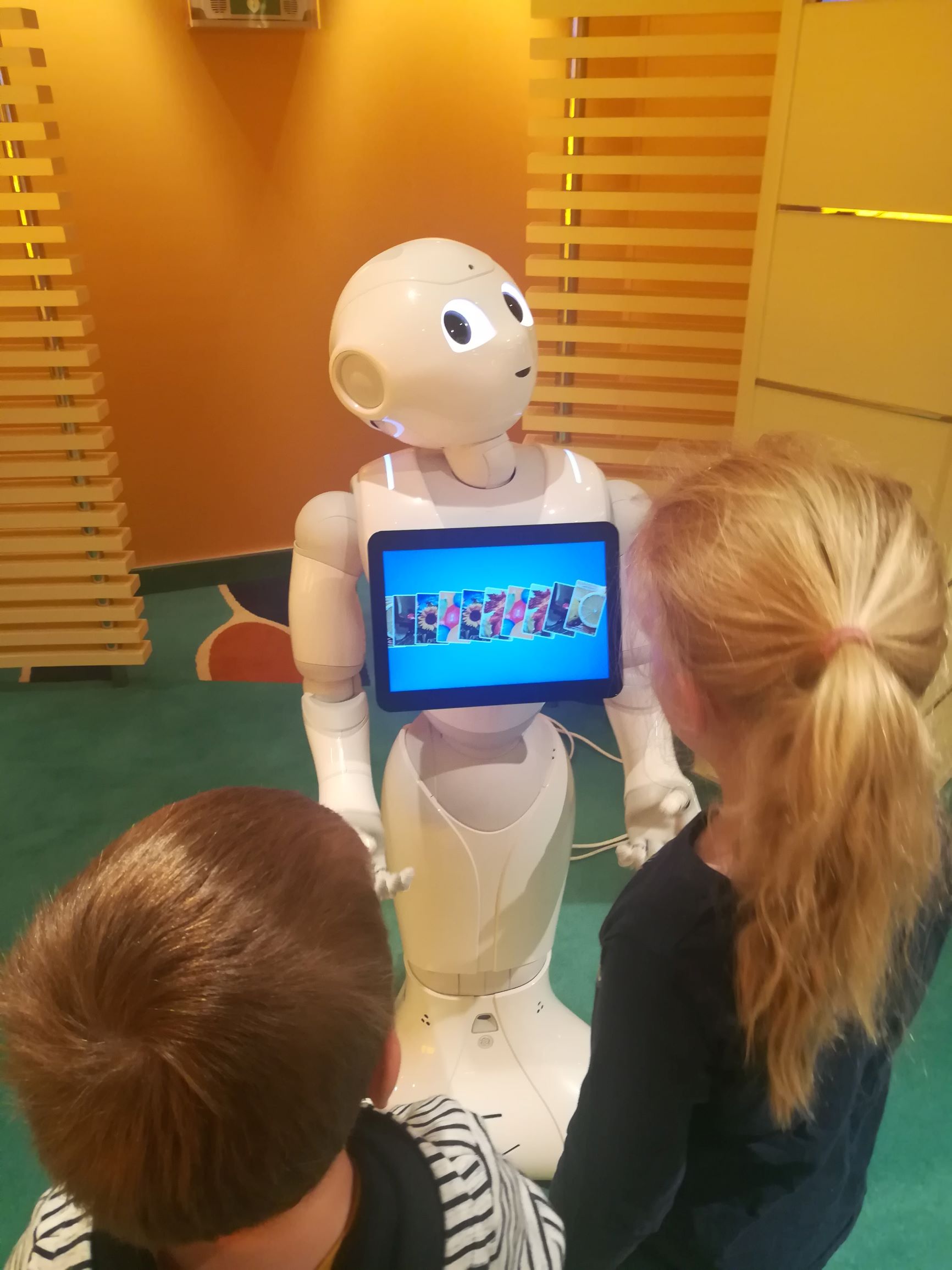 Danach treffen wir noch den absoluten Liebling unserer Kinder: Roboter Pepper.