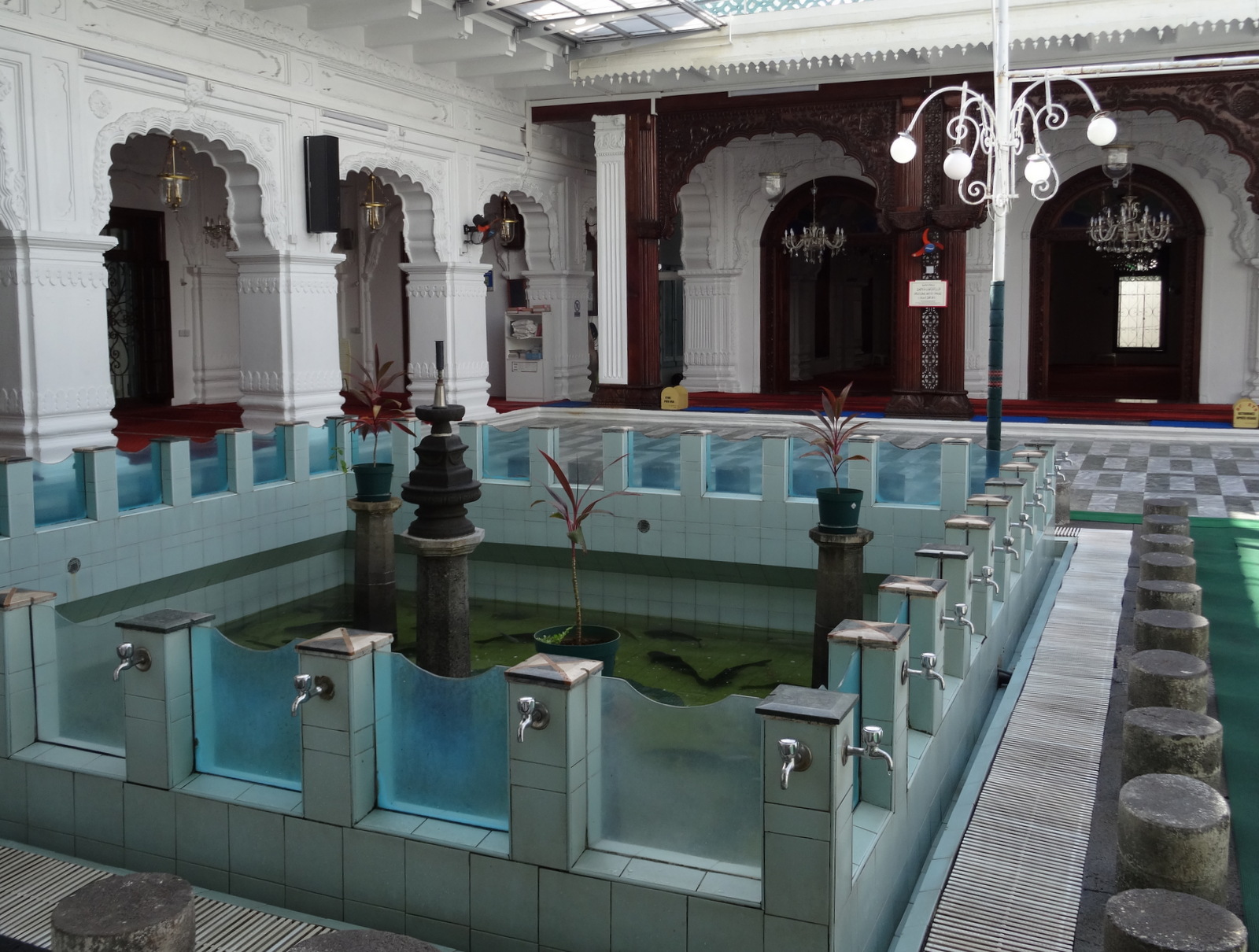 aus, hat man einen Blick auf die Gebetsräume und dort steht ein gekacheltes