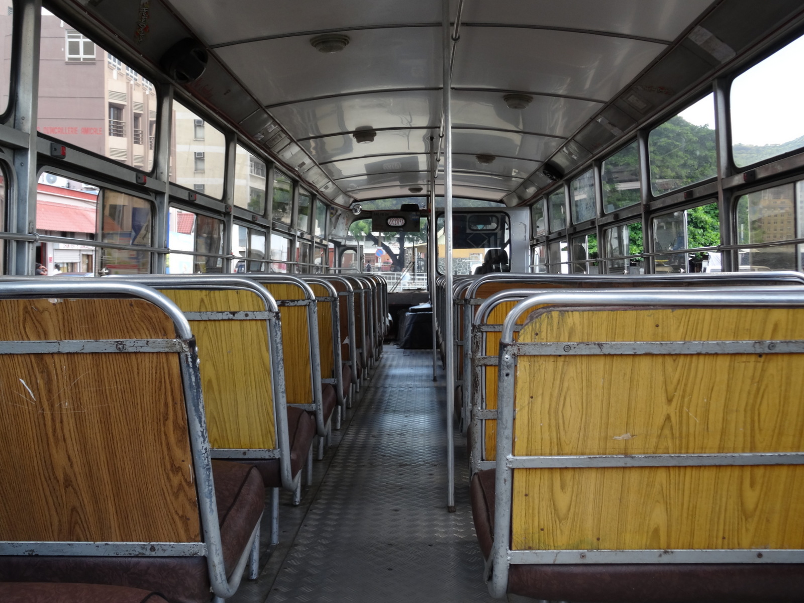 Der Teddy hat nur zwei Beine, drängt aber dafür nun den Träger zur Eile. Sightseeing in Port Louis ist angesagt. Direkt am Ausgang, -die Bushaltestelle. Wohl wegen Teddys hellem Fell halten die Einheimischen die Trägerin dort für eine Schwedin. Egal, wir fahren so oder so mit. Als Schweden, als Deutsche oder als Chinesen-Bär.