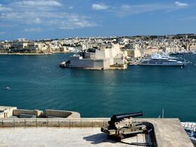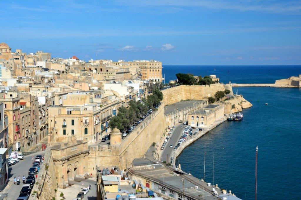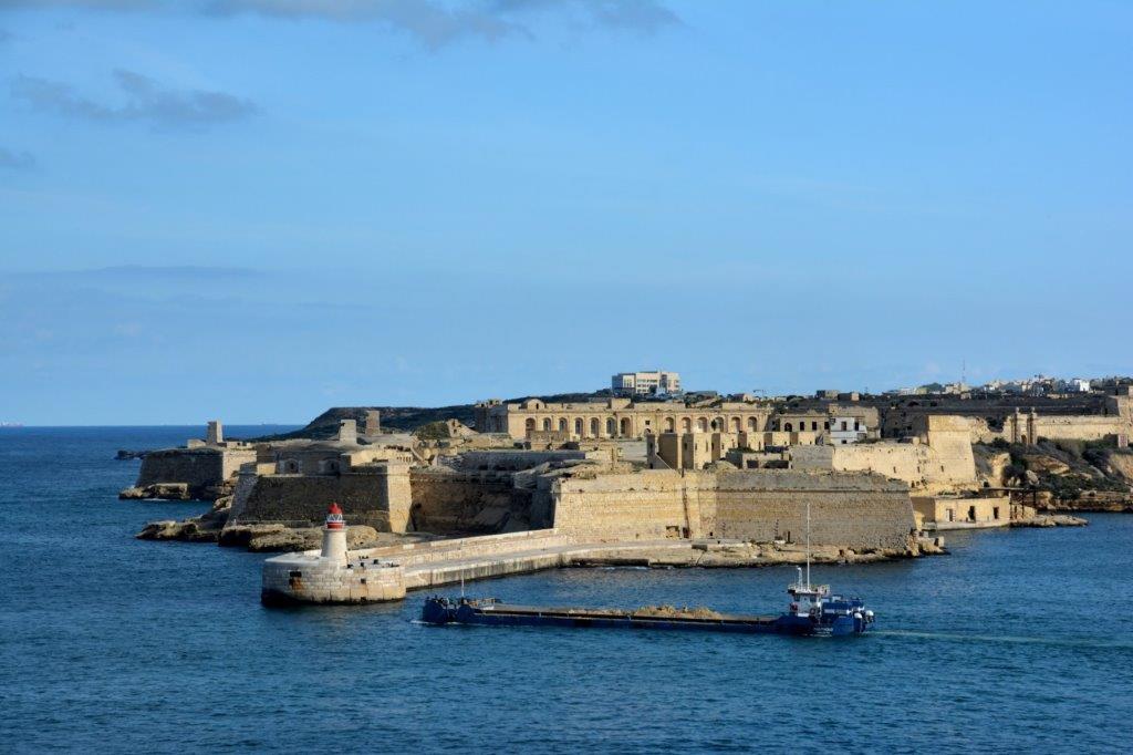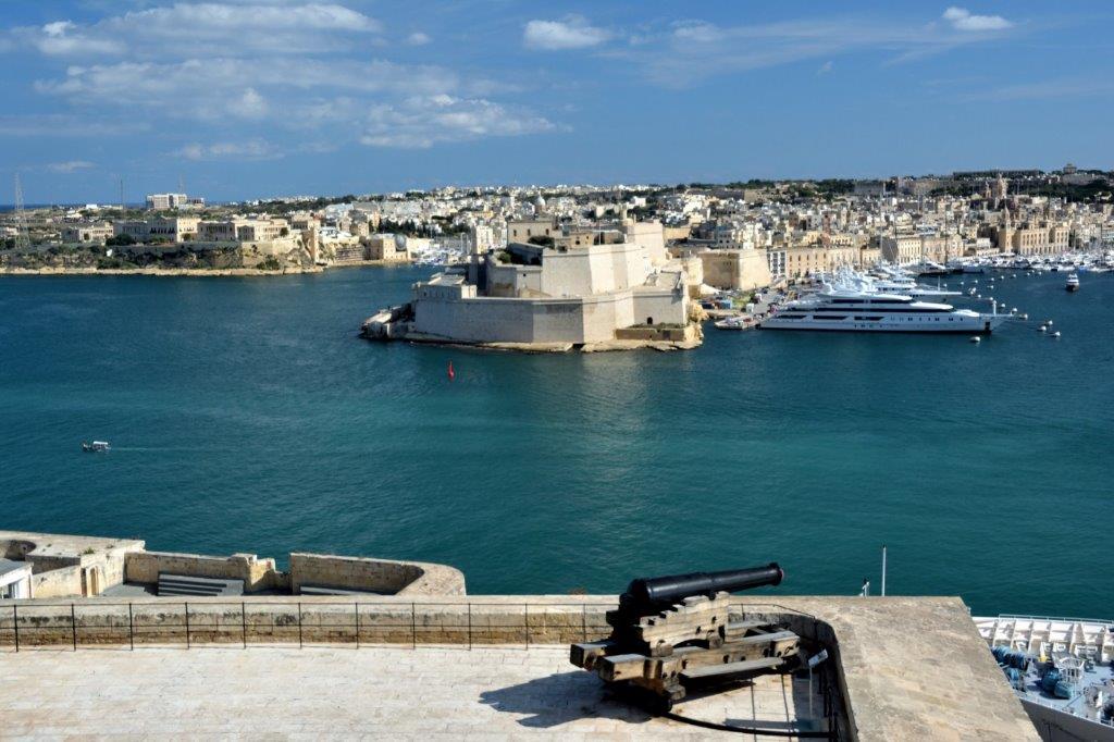 Beim Abstieg über Treppen bis zu den den Marsamxett Harbour begrenzende Mauern, die uns bis zur Rückkehr auf unser Schiff nicht mehr losließen, meldeten sich wieder unsere Waden. Was blieb uns anderes übrig als sie zu ignorieren?! Vorbei an dem die beiden größeren Häfen bewachenden Fort St. Elmo erreichten wir das Siege Bell Memorial. Gut, dass die Glocke bei unserem Besuch nicht läutete … Es wäre durch Mark und Bein gegangen … Von dieser Sehenswürdigkeit kamen wir nur sehr langsam vorwärts, denn immer wieder lockte die Aussicht auf die gegenüber liegenden Stadtteile, die auch von den Lower Barracca Gardens einmalig war.