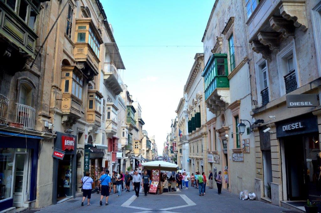 Jede Menge ältere Prachtbauten säumten die enge Straße. So eng, dass es schwierig war, Gebäude in Gänze aufzunehmen. Nach wenigen Minuten baute sich in einer Querstraße die St. John’s Co-Kathedrale, die spätere Hauptkirche des Ordens, vor uns auf.