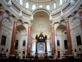 die der Prokathedrale St. Paul, und wir keuchten die Treppenstufen Richtung Eingangsportal hinauf. War aber nichts – geschlossen. Warum auch nicht – nichts Neues … Wir ließen uns nicht entmutigen und steuerten das in Sichtweite liegende nächste Gotteshaus an. Das Karmelitinnenkloster Shrine of Our Lady of Mount Carmel mit der weiten, hohen, alles überragenden Kuppel. Und das Portal war nicht geschlossen – also hinein. Staunen kam auf. Staunen über Weite und Höhe des Kircheninneren. Und über die dezente Pracht.