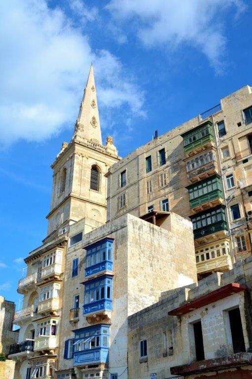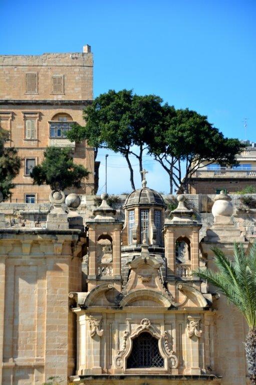 In unmittelbarer Nähe der St. John’s Co-Kathedrale und des Gerichtshofs machten wir im Schutz der klerikalen und staatlichen Kräfte eine Espressopause – wir hatten es verdient, schützten aber keine Müdigkeit vor, machten uns nach kurzer Zeit auf und stiegen hinab. Hinab Richtung Marsamxett Harbour als Ausgangspunkt für die halbe Umrundung der Altstadt. Schön, wie Hafen und Sliema vor uns lagen. Wir kamen allerdings nicht richtig voran, denn nach wenigen Metern lockten die nächsten Kirchtürme,