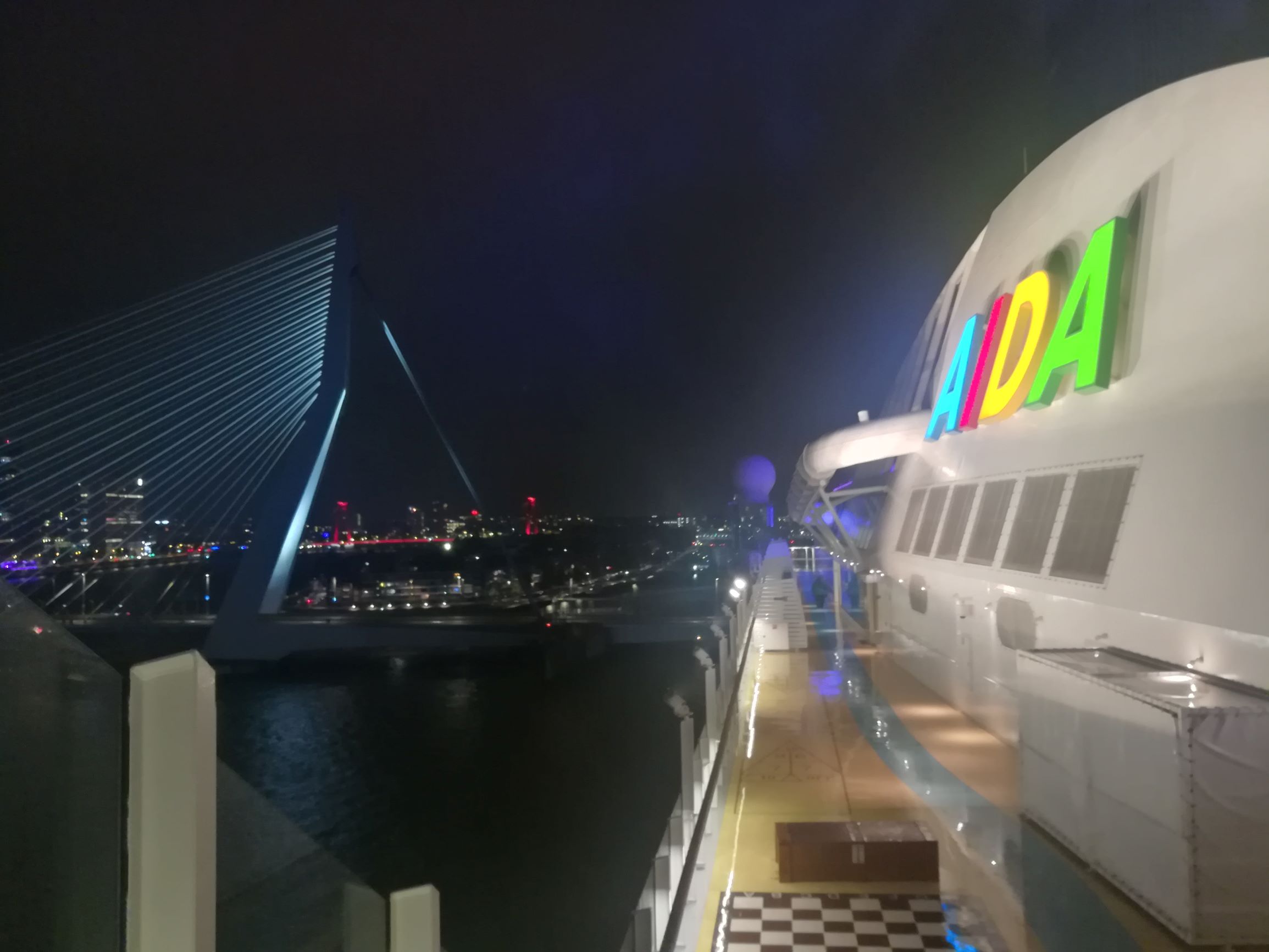 Da die Perla über Nacht in Rotterdam liegt, machen wir noch ein paar Fotos von der Erasmusbrücke bei Nacht.