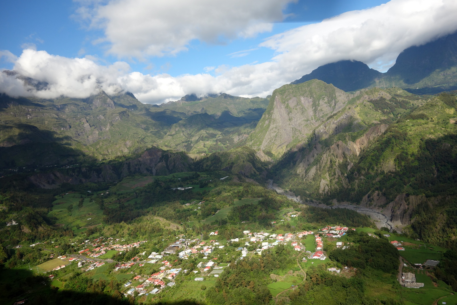 Auf Plateaus in mittlerer Höhen zumeist, mehrere sogenannte Ilets, also Dörfer oder Siedlungen, die größte, La Nouvelle, mit wohl etwa 200 Bewohnern. Insgesamt wohnen hier wohl so etwa 800 Leute, die sich übrigens weigern an eine Straße angeschlossen zu werden. Wenn es denn überhaupt -wie offenbar woanders- technisch möglich wäre, denn Mafate ist der am schwersten zugängliche Talkessel. Man fürchtet durch eine engere verkehrstechnische Anbindung mittlerweile vor allem um den Wandertourismus, eine wesentliche Einnahmequelle. Diese hat man sich u. a. durch Übernachtungsquartiere aufgebaut und das soll auch so bleiben. Denn könnten die Menschen das Dorf und die Umgebung im Rahmen einer Tagestour erreichen, dann könnte man denen höchstens noch ne Stulle verkaufen.