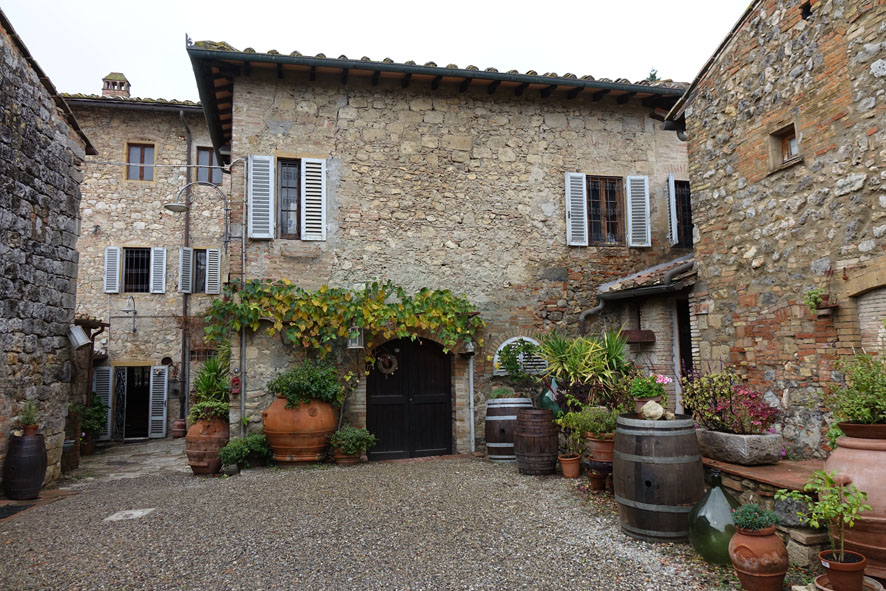 Von San Gimignano ging es nach San Donato, einem Weingut. Hier gab es ein Mittagessen und eine kleine Weinprobe. Beim Mittagessen war von zwei New Yorker Mädels am Tisch zu erfahren, dass sie deutsches Essen lieben, Bratwurst, Sauerkraut, Brezen, Schnitzel. Immer wieder schön mit internationalen Mitreisenden ins Gespräch zu kommen. Später gab es noch eine Führung durch das Weingut.