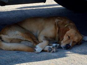 Unser Ausflugsboot stand noch nicht bereit. Kein Problem, denn es gab genug zu sehen. Z.B. faule Hunde. Hier einer von ihnen …