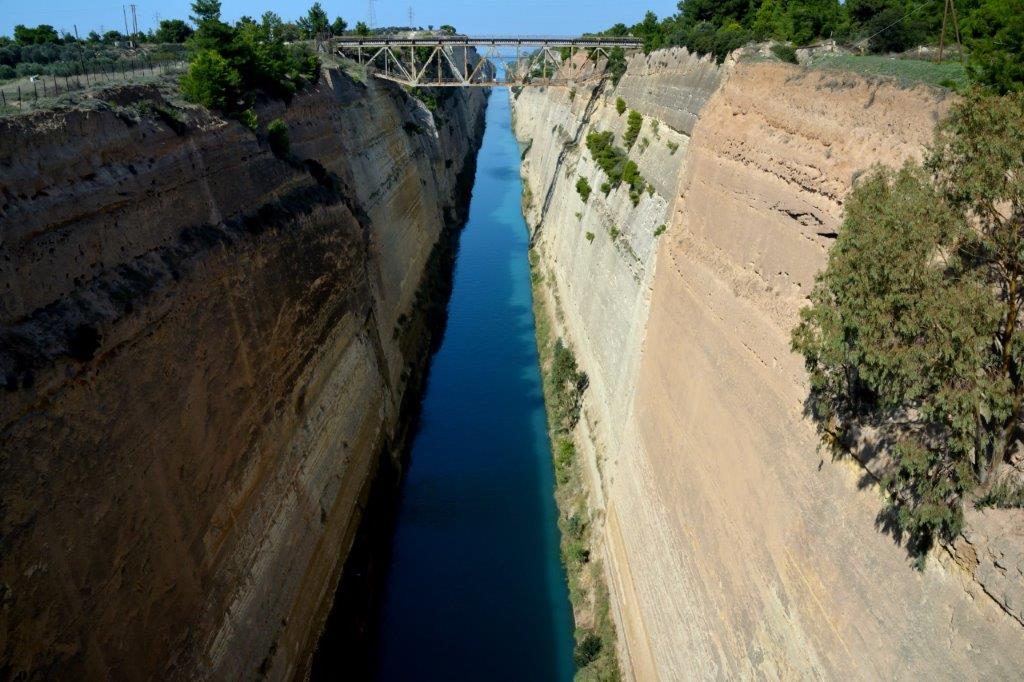 Gut, ab 1881 wurde in dieser Gegend Dynamit nicht nur erprobt. 2.500 Arbeiter plackten sich ab und schafften 12 Mio. Kubikmeter Erde und Steine irgendwohin. Bis nach 12 Jahren der gebürtige deutsch-dänische König Georg I von Griechenland als Nachfolger des Wittelsbachers Otto (der nicht so gute Deutsche? Grins …) die Wasserstraße frei gab. Für viele Jahrzehnte eine Erfolgsgeschichte; immerhin gab es eine „Wegersparnis“ von 131 sm. Selbst heute schippern noch immerhin durchschnittlich 30 Wasserfahrzeuge zwischen den hohen Felswänden von einem Golf zum anderen. Eher eine Touristenattraktion als für den Transport von Gütern gedacht, denn Breite und Tiefe des Kanals entsprechen nicht mehr den heutigen Anforderungen.