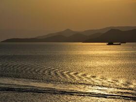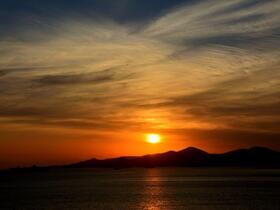 Schämte sich die Sonne? Sie verschwand nach und nach … und hinterließ einen brennenden Himmel - die Vorbereitung zum Abschied von Piräus. Wir waren um 18 Uhr wieder pünktlich.