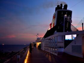 Die Hop on Hop Off – Busse ließen wir links liegen und vertrauten unseren inzwischen wieder frischen Waden. Wir folgten der holprigen Hafenpromenade. Und siehe da – in der Zwischenzeit war ein Kussmundschiff angekommen. Die ein wenig zerknautschte AIDAcara …