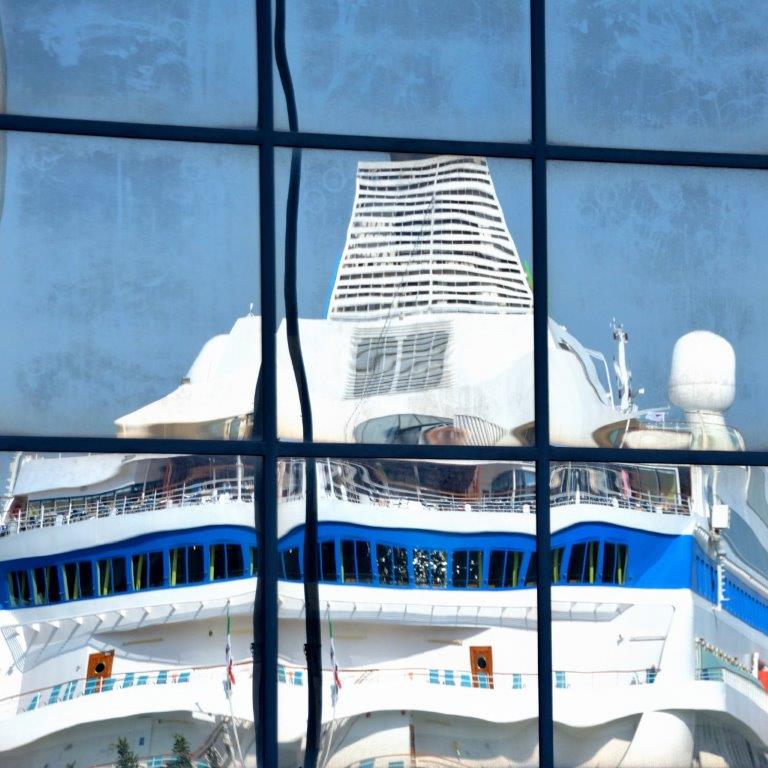 Die Hop on Hop Off – Busse ließen wir links liegen und vertrauten unseren inzwischen wieder frischen Waden. Wir folgten der holprigen Hafenpromenade. Und siehe da – in der Zwischenzeit war ein Kussmundschiff angekommen. Die ein wenig zerknautschte AIDAcara …