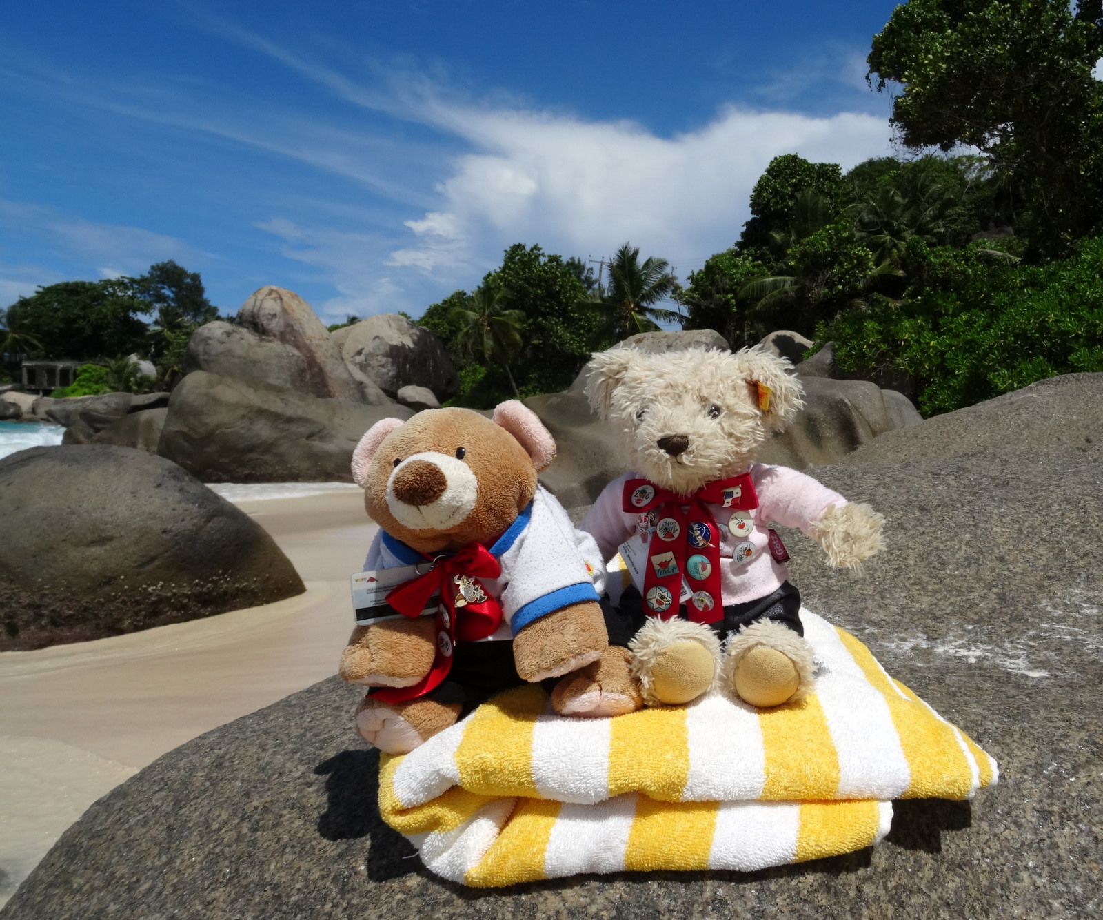 In der nächsten Folge, dem dritten und letzten Tag auf den Seychellen, geht es wieder auf das Wasser und auch darunter. Beim Segeln zwischen den Trauminseln" besuchen wir die "unbewohnte" Insel Curieuse. Am Abend, beim Verlassen der Seychellen, ist es offenbar zugig auf dem Balkon, denn der Teddy bekommt feuchte Augen. Äquatortaufe und Piratengefahren bringen ihn aber erstmal auf andere Gedanken, auf seinem Weg in eine gänzlich andere Landschaft und Kultur, im Oman, auf der arabischen Halbinsel...