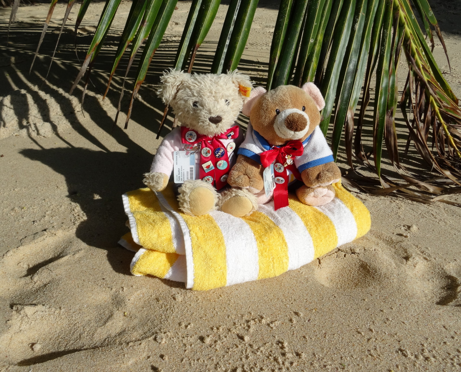 aber der andere wäre wohl…. Aber wir wollen mal keine Hektik aufkommen lassen und bleiben jetzt hier. Weiter selbstzufrieden über die weitestgehende Umsetzung des ausgearbeiteten Plans, lehnen sich die Teddys unter einem Palmblatt entspannt zurück und genießen den Ausblick...