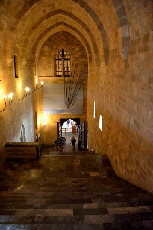 Um noch Zeit zu haben, den Großmeisterpalast zu besichtigen. Allein der Innenhof ließ erahnen, welche großzügigen Räumlichkeiten uns im Inneren erwarteten. Nicht schlecht, die breite, zum Obergeschoss führende Treppe. Oder auch hinunter ins Erdgeschoss ..