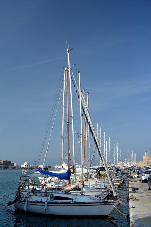 Voll mit hoffentlich unauslöschlichen Eindrücken verließen wir die Altstadt und nahmen uns die Freiheit, das Eleftheria-Tor zu durchschreiten. Direkt hinter der verkehrsreichen Umgehungsstraße lag der nächste attraktive Teil von Rhodos vor uns – der Mandráki-Hafen. In dem einstigen antiken Kriegshafen lagen allerdings keine Galeeren sondern viele Segelboote.
