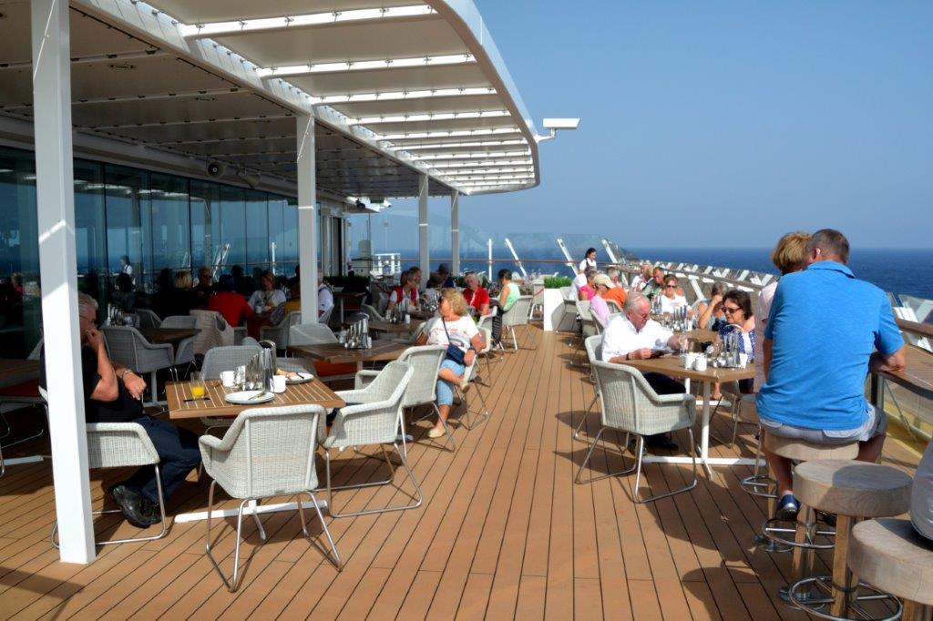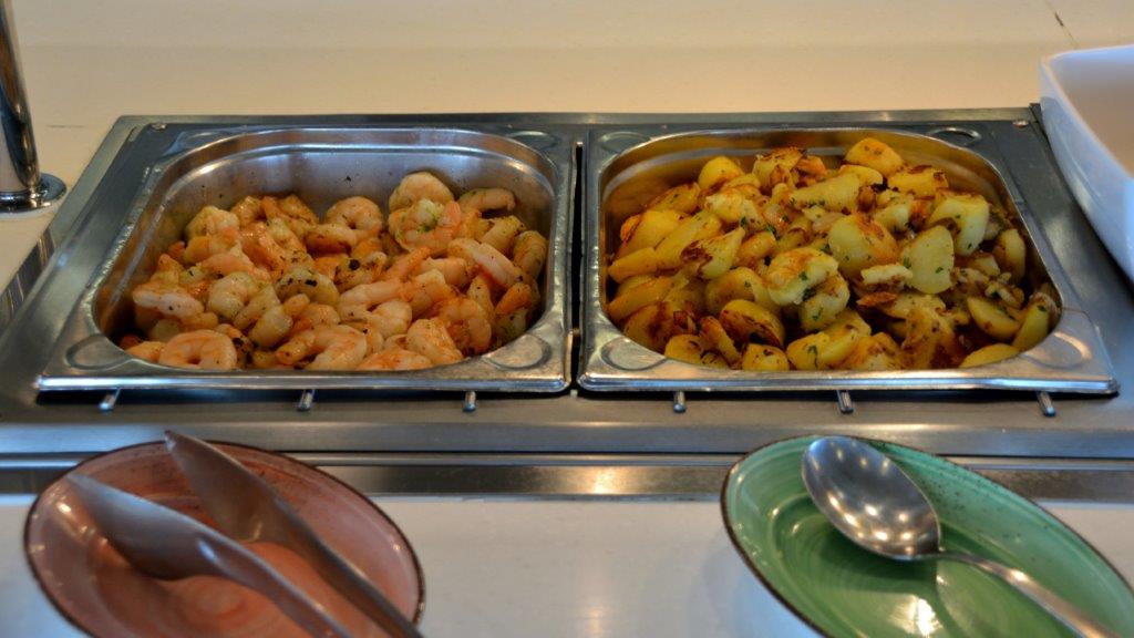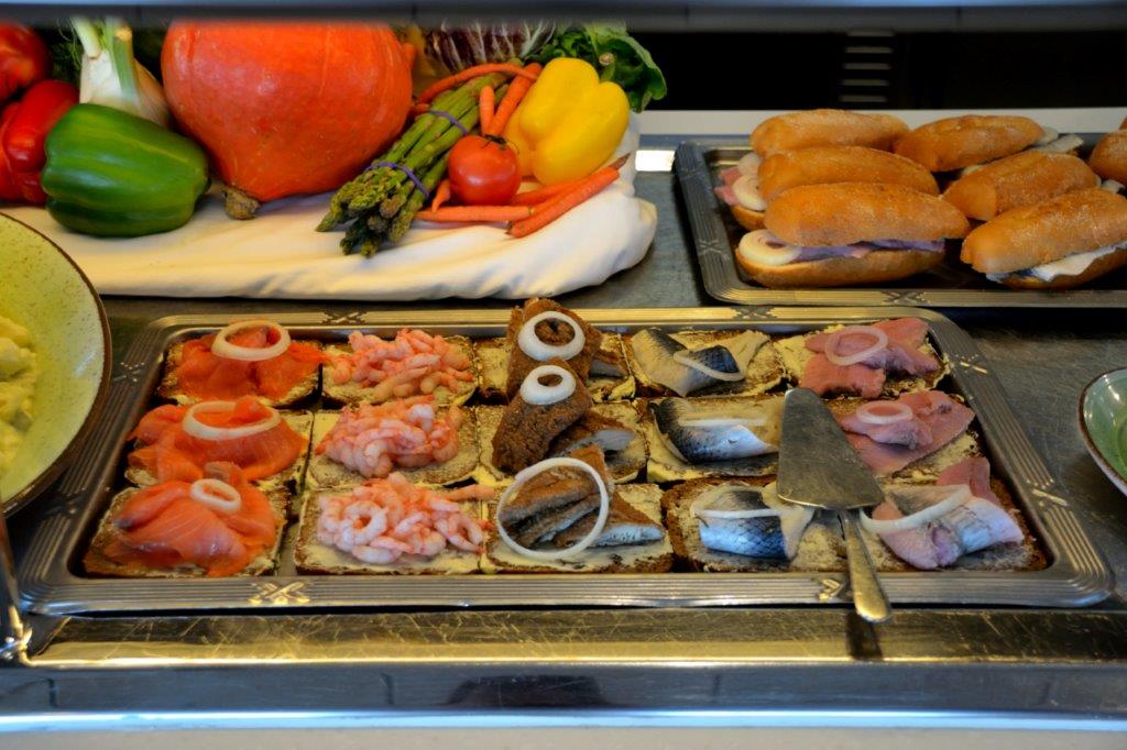 ... schnell hinauf aufs Schiff zu einem Essensintermezzo. Wir wählten Gosch – uns war nach Fisch. Den Buffetbereich mit Platz im Freien.