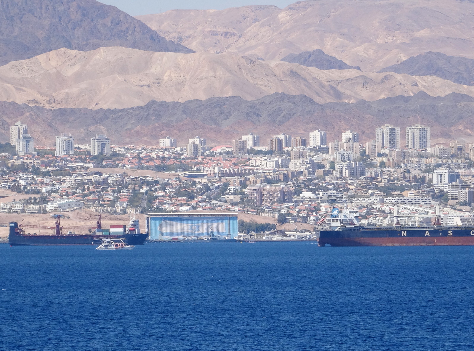 Die Israelis allerdings nennen es nach ihrer Hafenstadt dort, den Golf von Eilat. Ist also Ein und das Gleiche mit gemeint. Mit der Einigkeit hat man es hier eben nicht so. In der Spitze vom Golf treffen sich jedenfalls die schmalen Küstenstreifen von Israel und Jordanien. Rechts und links daneben Ägypten mit der Sinai-Halbinsel und Saudi-Arabien.