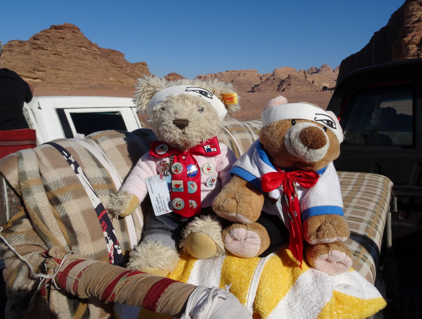 Bei dieser Reise liegst du schließlich noch unter dem geschätzten Altersschnitt. Nicht nur, weil die beiden Teddys ihn gewaltig nach unten ziehen… Außerdem ist man nur so alt, wie man sich fühlt. Und fühlst du dich etwa schwach und alt, –So kurz davor, hier in der Wüste den Lawrence von Arabien zu geben…?
