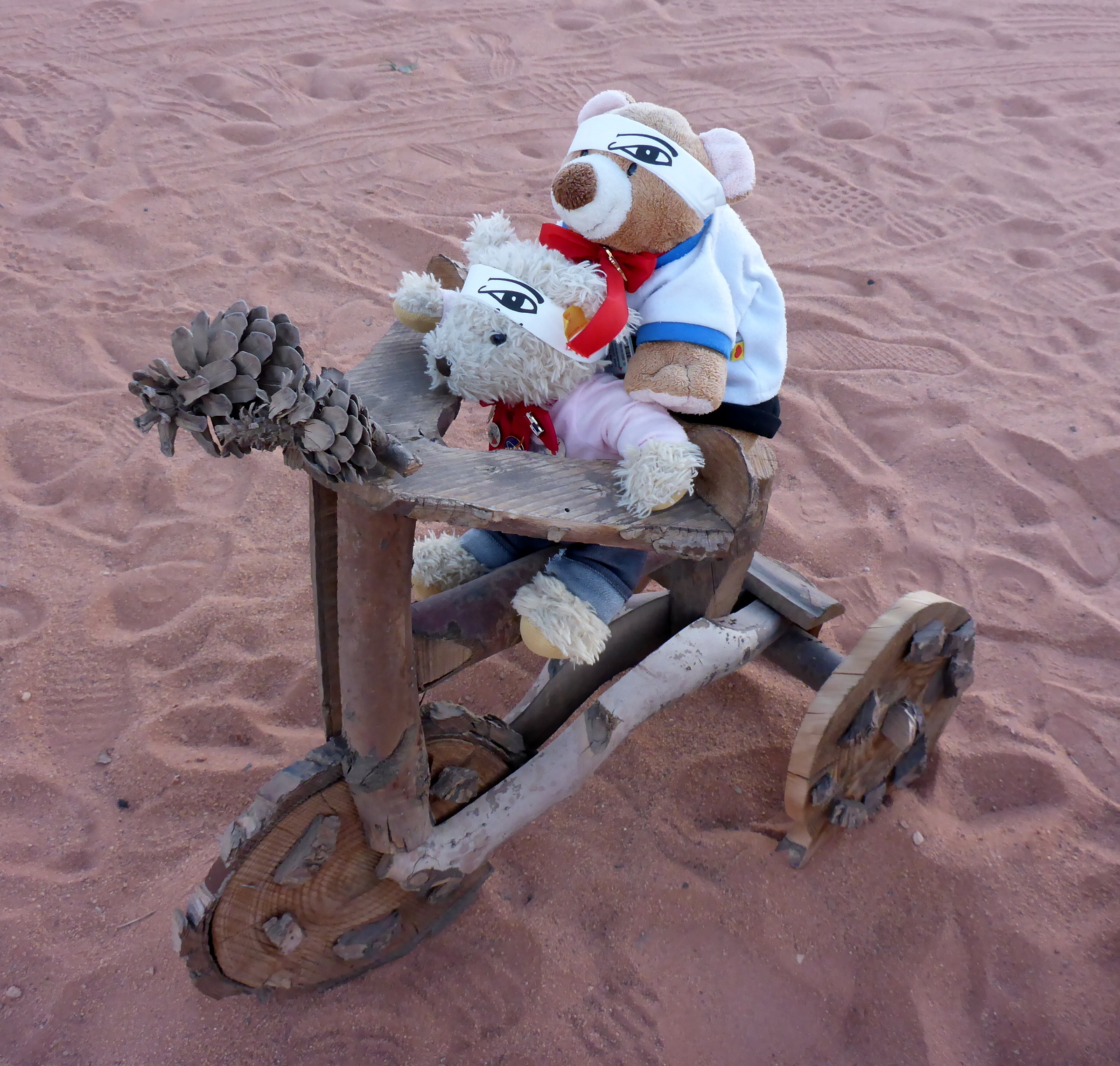 Bei dieser Reise liegst du schließlich noch unter dem geschätzten Altersschnitt. Nicht nur, weil die beiden Teddys ihn gewaltig nach unten ziehen… Außerdem ist man nur so alt, wie man sich fühlt. Und fühlst du dich etwa schwach und alt, –So kurz davor, hier in der Wüste den Lawrence von Arabien zu geben…?