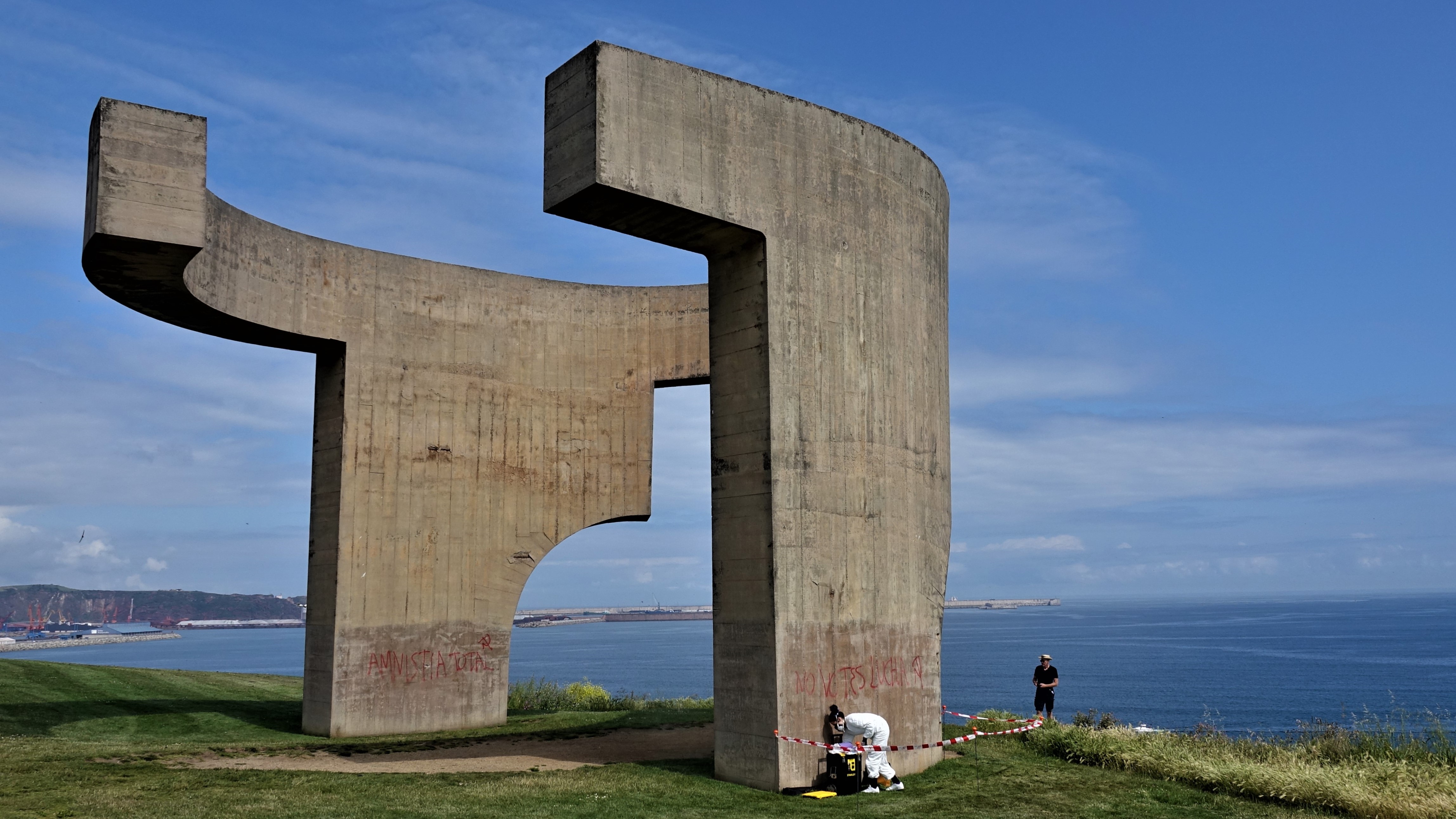 Der Industriehafen ist nicht besonders schön und wir können ihn nur mit dem kostenlosen Shuttle verlassen. Der Bus fährt uns in Richtung Altstadt und lässt uns am Yachthafen „Puerto Deportivo“ raus, von wo wir erst einmal den Hügel zu dem „Elogio del Horizonte“ erklimmen.