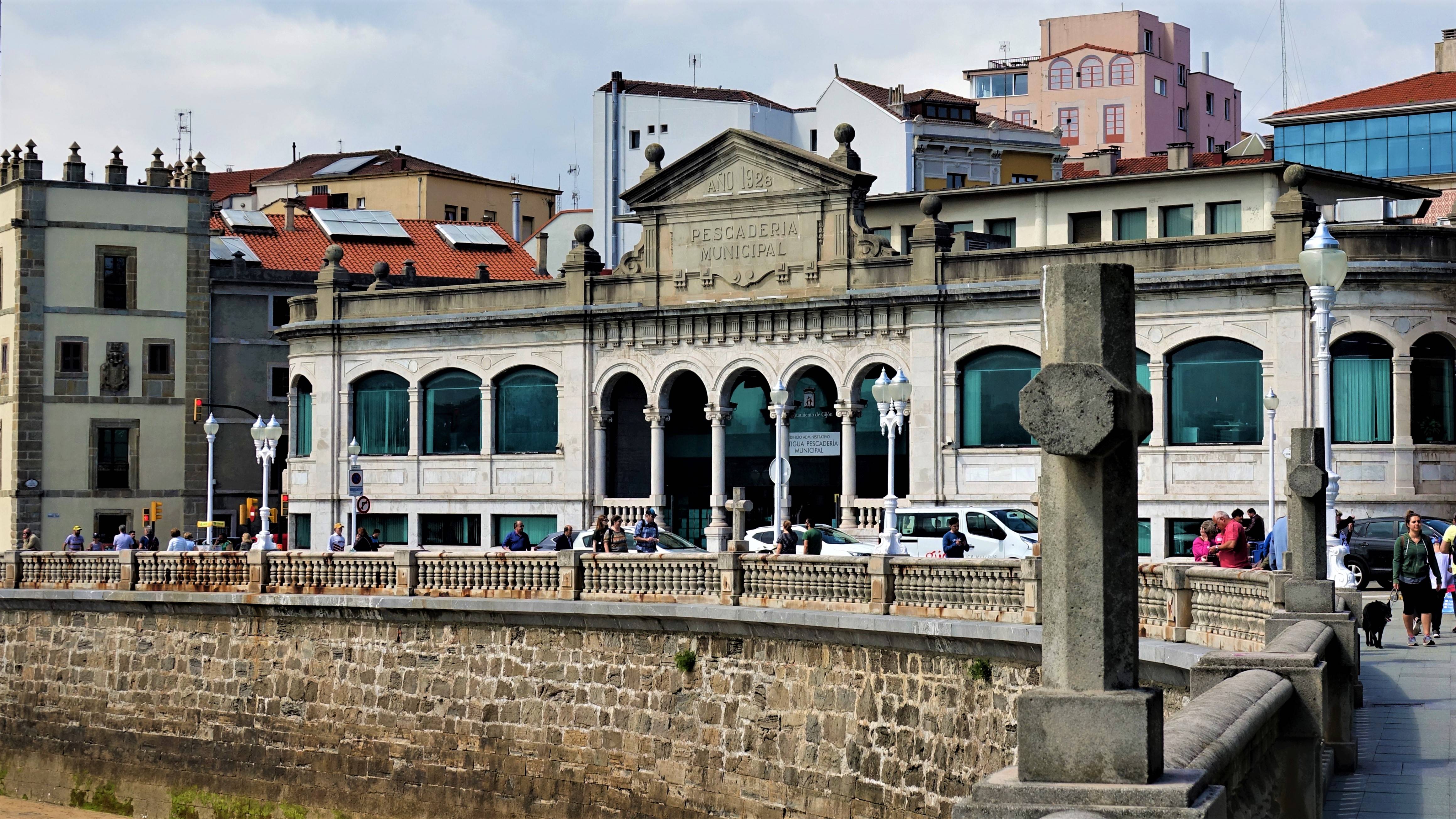 Dann geht’s wieder bergab in die Altstadt „Cimadevilla“ mit der Kirche „Iglesia de San Pedro“ und dem Verwaltungsgebäude der ehemaligen städtischen Fischerei von 1928 „Pescaderia Municipal“.
