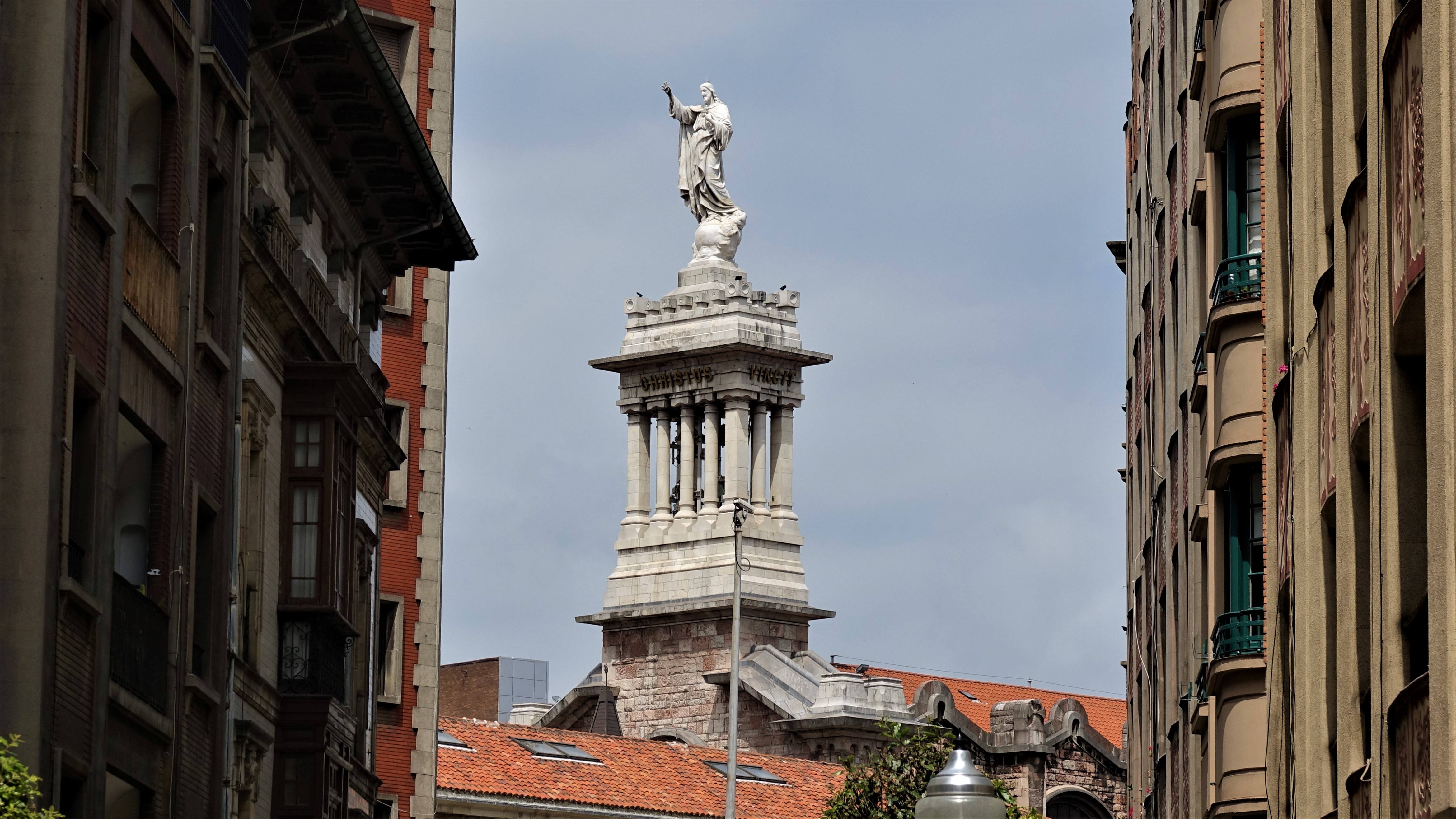 Dann schlendern wir durch den anderen Teil der Altstadt mit einigen Straßenmotiven und dem Blick auf die riesige Jesus Statue auf dem Dach der Kirche „Basilica-Santuatio del Sagrado Corazón de Jesús“.