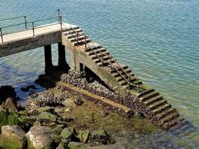 An einer ziemlich maroden Badetreppe blicken wir noch einmal kurz auf unsere AIDAaura zurück, wo mittlerweile auch noch ein zweiter Kreuzfahrer ähnlicher Größe festgemacht hat. Es ist die uns unbekannte „Insignia“, aber sehr schön und sehr luxuriös.