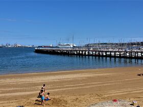 Noch einmal schauen wir auf die Strände von Las Arenas und nähern uns der Mündung des Ria des Nervións, der hier in die Biscaya fließt.