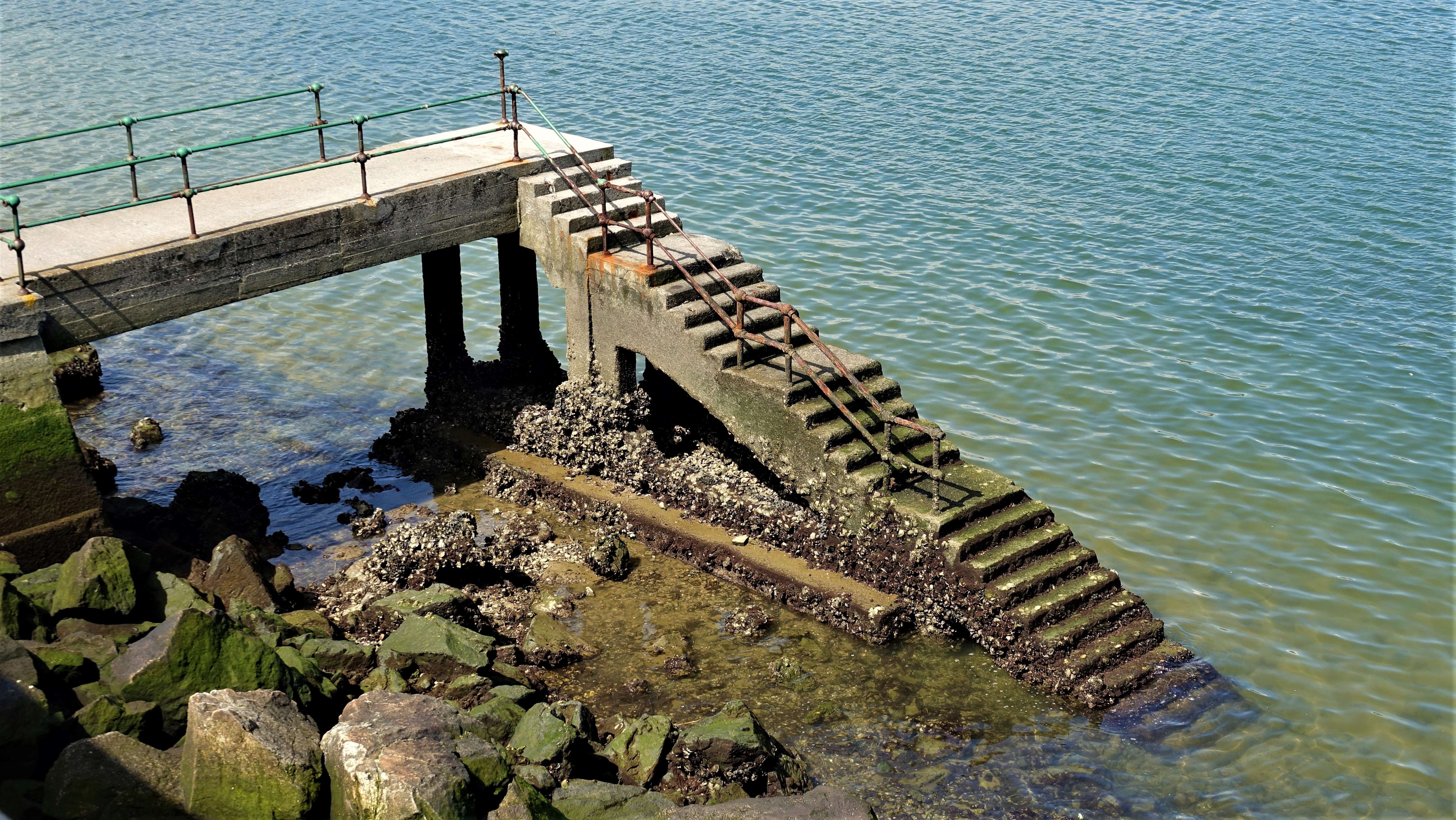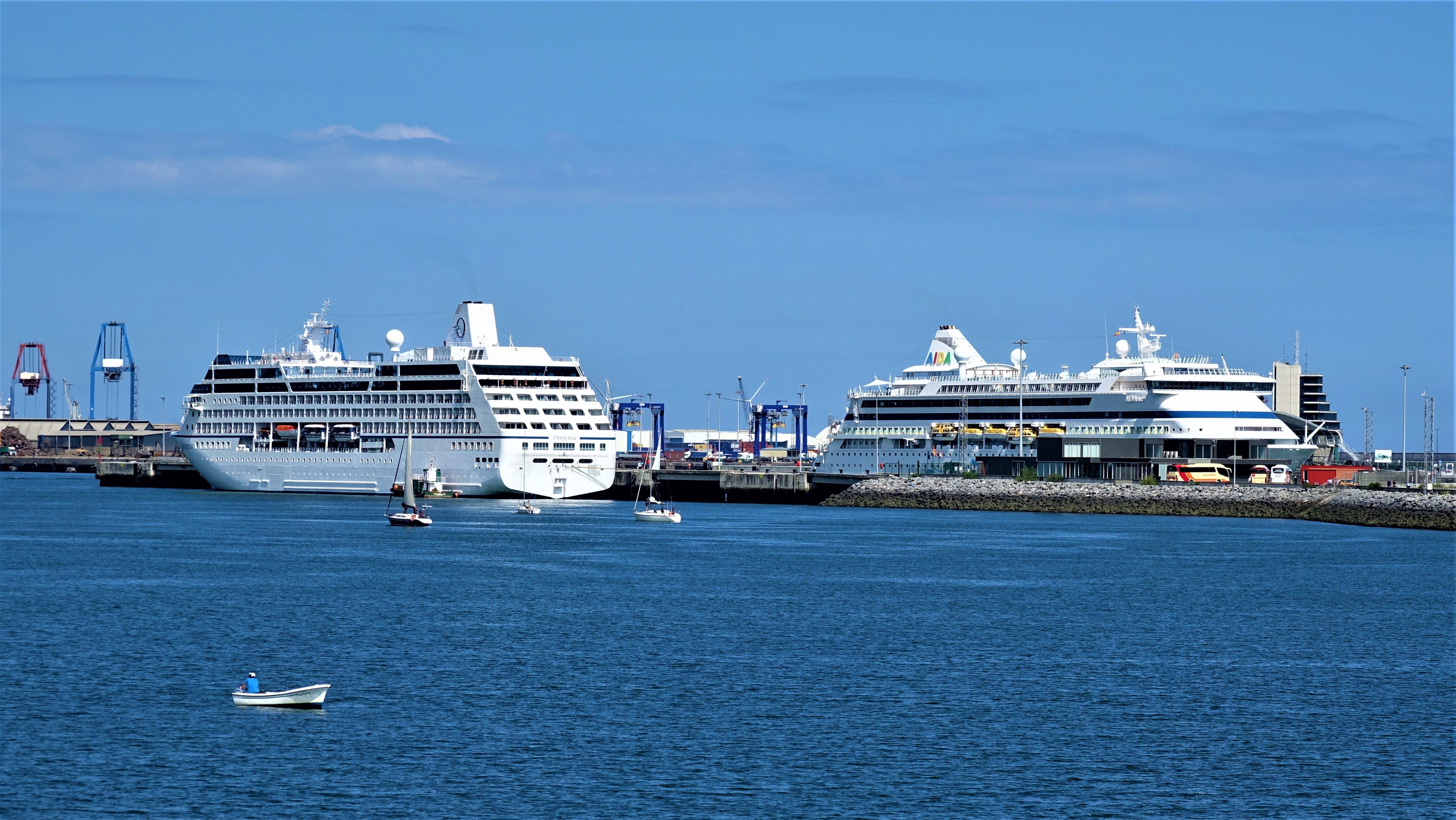 An einer ziemlich maroden Badetreppe blicken wir noch einmal kurz auf unsere AIDAaura zurück, wo mittlerweile auch noch ein zweiter Kreuzfahrer ähnlicher Größe festgemacht hat. Es ist die uns unbekannte „Insignia“, aber sehr schön und sehr luxuriös.