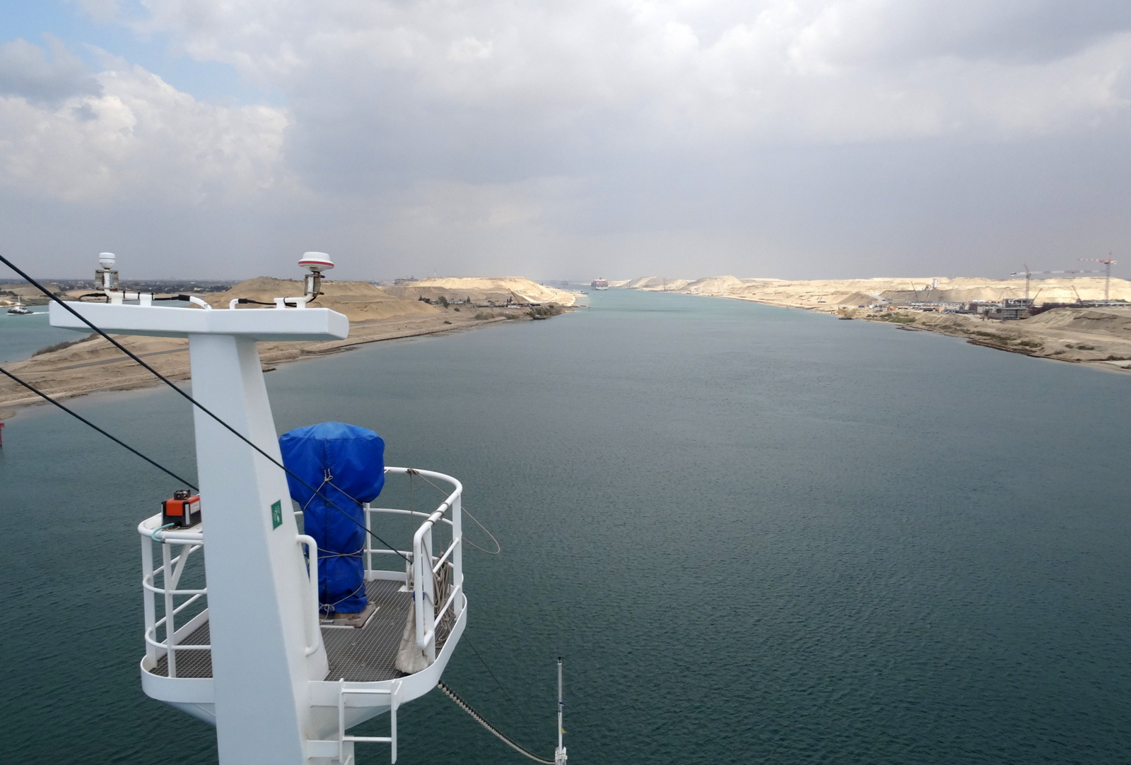 Seit 23:00 Uhr liegt das Schiff vor dem Kanal auf Reede. Wir, also eher natürlich die Besatzung, haben Anker geworfen. Früh morgens soll es weitergehen, wenn sich der Konvoi gesammelt hat.