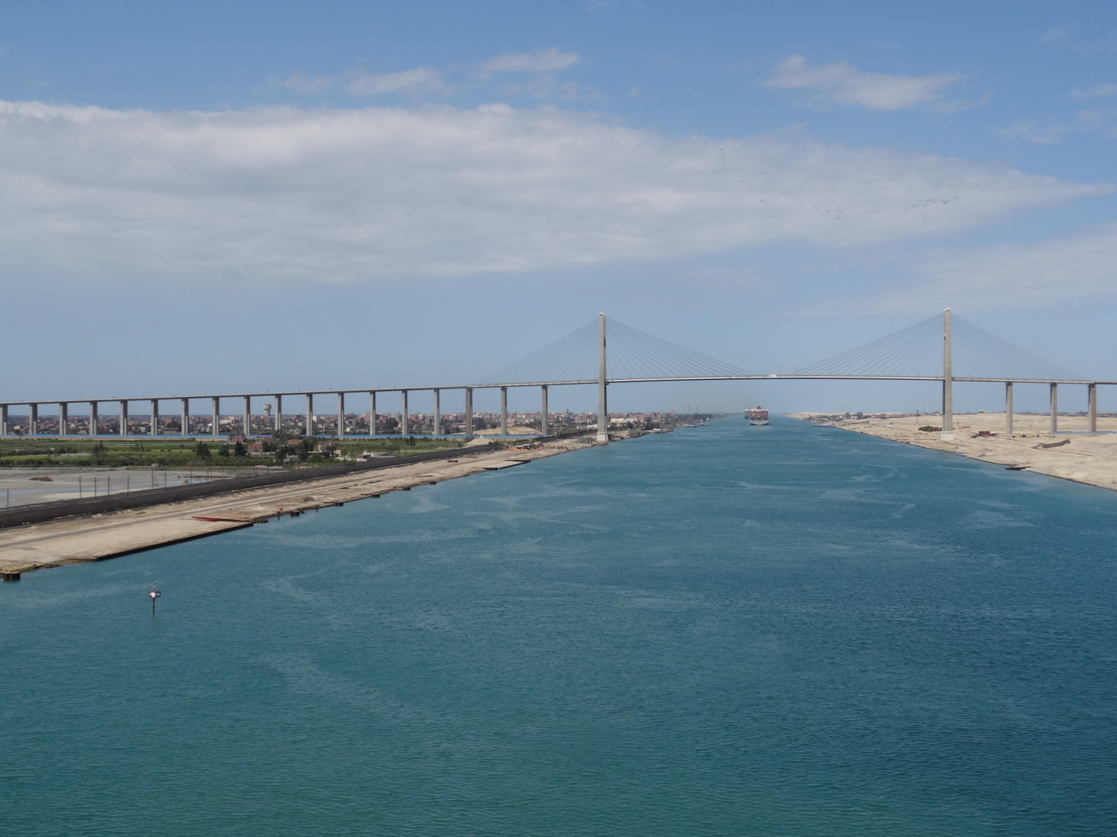 Durch den Bittersee und nicht durch das Rote Meer, wie fälschlicherweise immer wieder behauptet wird, ist damals auch schon der Moses durchgelatscht. Wir fahren lieber mit dem Schiff da durch –auch weil wir kein Wasser teilen können…