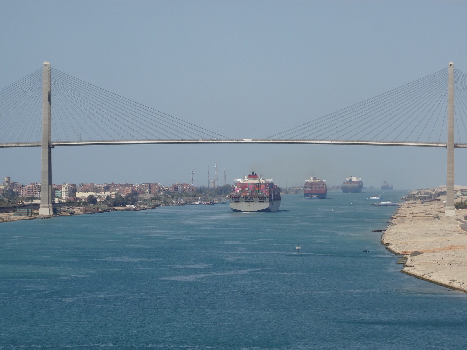 Genau hier lagen damals 14 Schiffe fest, als sie vom 6-Tage Krieg überrascht wurden. Und das nicht nur 6 Tage, sondern 6 Jahre lang, von 1969 bis 1975. Das darf uns heute aber nicht passieren. Der Ty und der Teddy haben nur eine, jetzt schon nicht mehr ganz frische Hose mit…