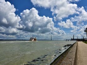 Auf der „Ponte de Normandie“ fahren wir auf die andere Seite der Seine und werden am Hafenbecken in die Freiheit entlassen.