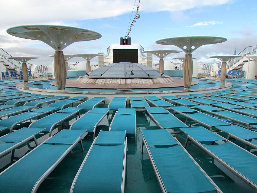 … und schließlich ein letztes Mal aufs Pooldeck. Am Eingang zum "Body & Soul Spa", wo ich mich einmal mehr auf dieser Reise sehr wohlgefühlt habe, werden die Gäste nett verabschiedet: