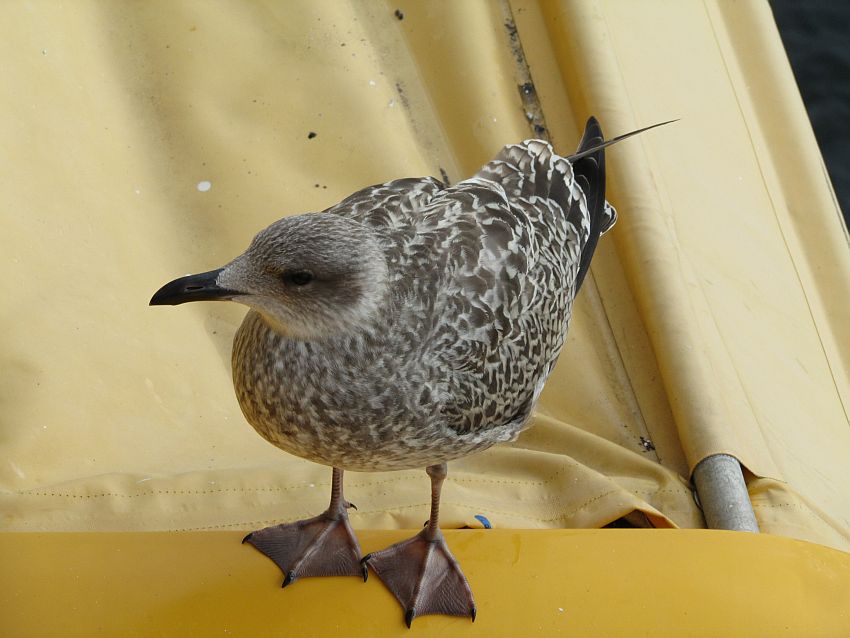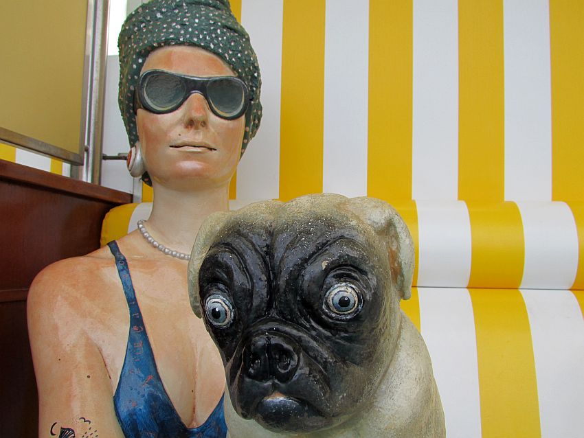 Noch einmal im Strandkorb neben "Luna & Mops" Platz nehmen und den Blick übers Deck genießen, währen der gelb-bestrumpfte und blau-behoste, ziemlich schmale "Pappkamerad" seiner morgendlichen Ballsport-Ertüchtigung nachgeht …