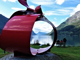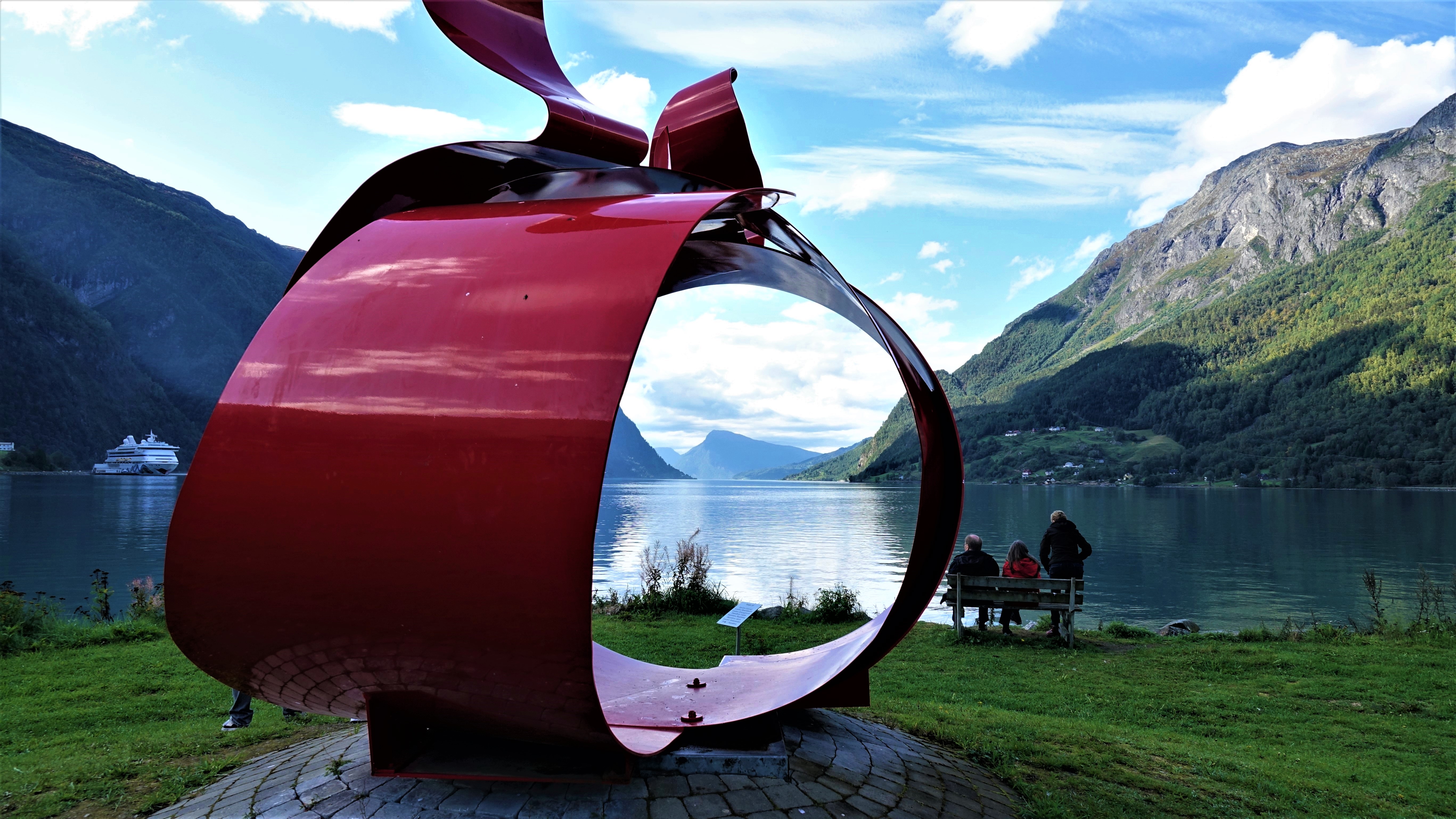 Um auf das Ende des Fjords noch etwas markanter hinzuweisen, haben die Norweger ein wenig Kunst in die Landschaft gestellt. Eignet sich auch gut als Fotomotiv.