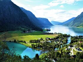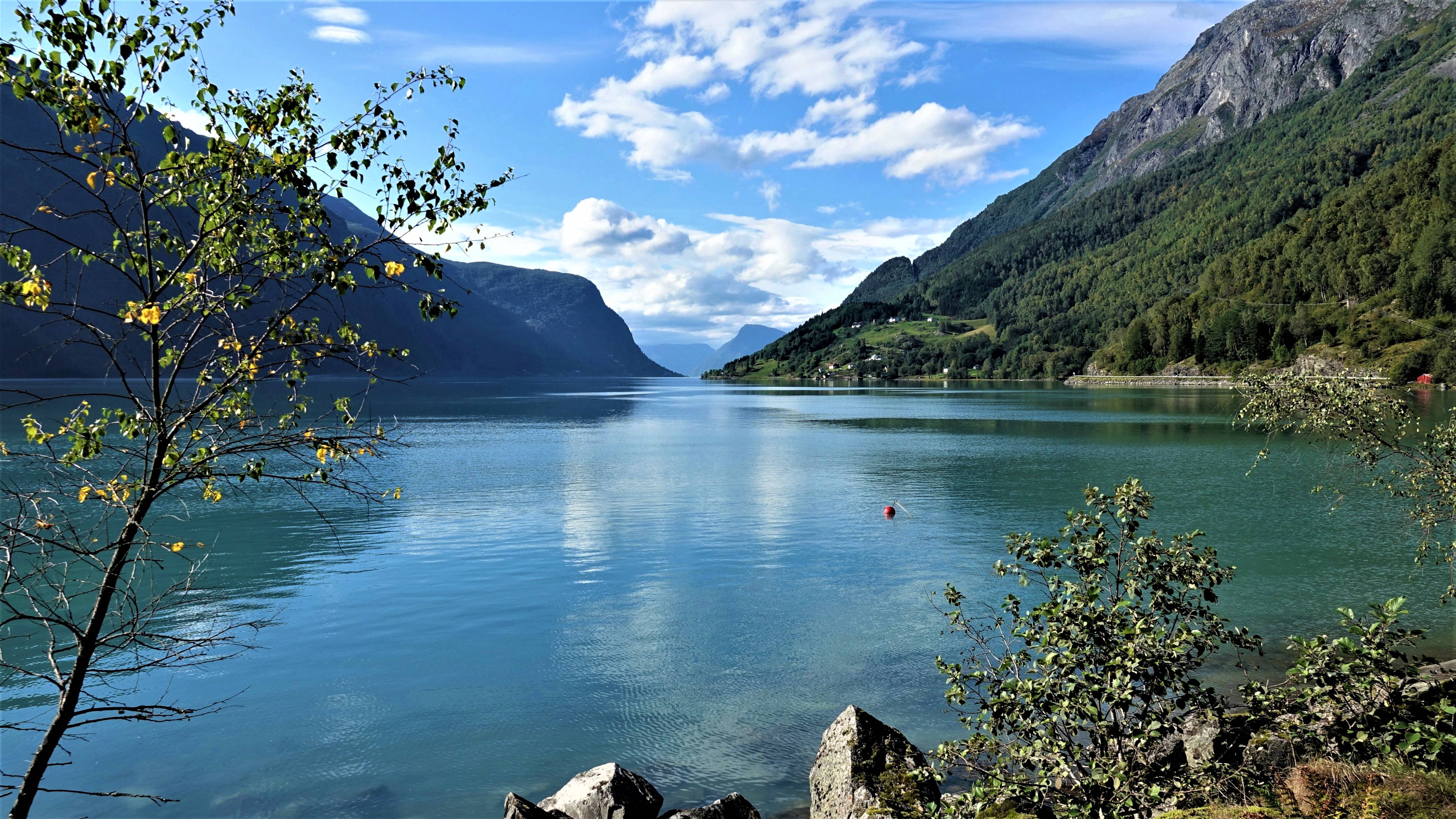 Und dann haben wir es erreicht: das Ende des Sognefjords, dem mit 204 km längsten und mit 1.308 m tiefste Fjord Europas. Doch ganz offiziell gesehen, liegt Skjolden am Lustrafjord, einem Nebenarm des Sognefjords.